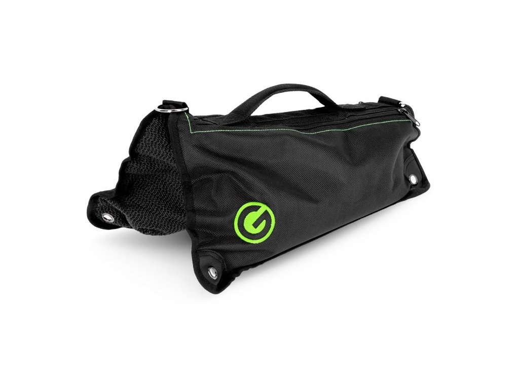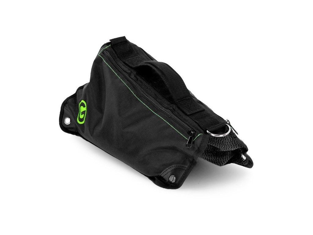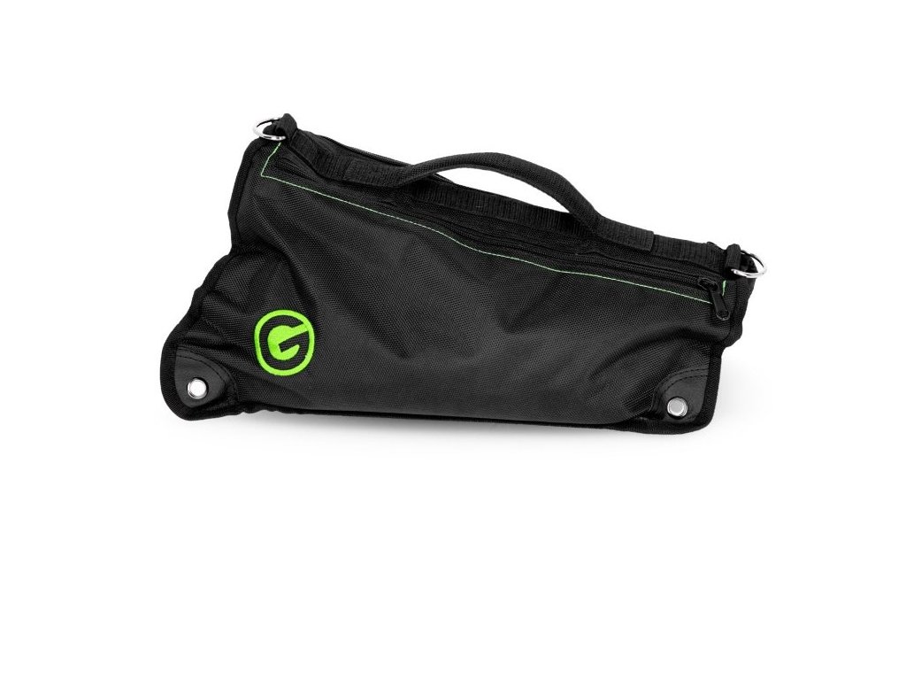 Aby ewentualnie mocno napełnione worki nie ześlizgiwały się po stromych nogach statywu, mają na spodniej stronie specjalną antypoślizgową powierzchnię z siatki. Dzięki temu worki BG SB można szybko i łatwo zakładać, zdejmować i ponownie kłaść podczas gorączkowego przepakowywania. (Do przymocowania worka do nogi statywu nie są potrzebne rzepy ani paski). W przypadku silnego wiatru można bezpiecznie przymocować torby do statywu za pomocą opasek zaciskowych lub liny, wykorzystując zintegrowane metalowe oczka w rogach.
