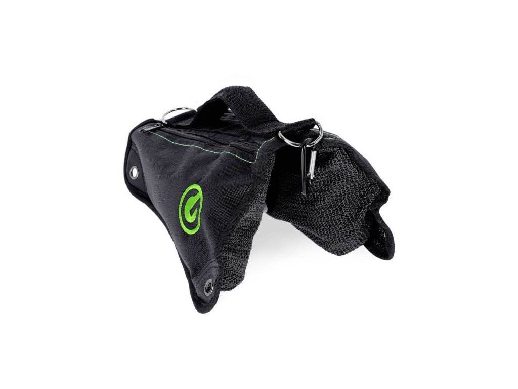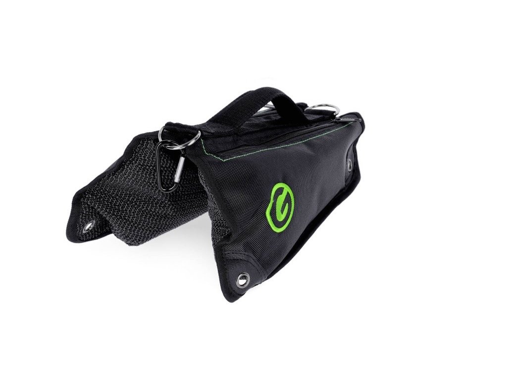Aby ewentualnie mocno napełnione worki nie ześlizgiwały się po stromych nogach statywu, mają na spodniej stronie specjalną antypoślizgową powierzchnię z siatki. Dzięki temu worki BG SB można szybko i łatwo zakładać, zdejmować i ponownie kłaść podczas gorączkowego przepakowywania. (Do przymocowania worka do nogi statywu nie są potrzebne rzepy ani paski). W przypadku silnego wiatru można bezpiecznie przymocować torby do statywu za pomocą opasek zaciskowych lub liny, wykorzystując zintegrowane metalowe oczka w rogach.
