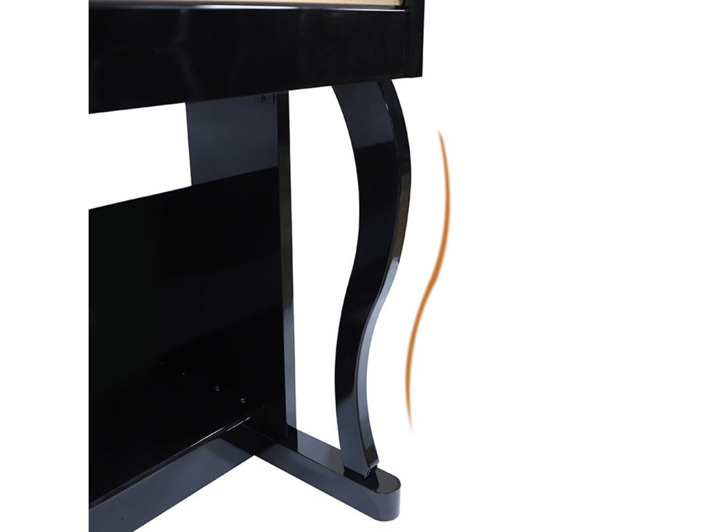 Czarne wykończenie na wysoki połysk sprawia, że pianino doskonale wpasuje się w każde wnętrze – od klasycznego po nowoczesne. Solidna konstrukcja i waga 78 kg zapewniają stabilność nawet podczas intensywnego grania. Polifonia 81 głosów i 512 MB pamięci pozwalają na szeroki zakres interpretacji muzycznych. Trzy pedały – una corda, forte i sostenuto – zapewniają pełną kontrolę nad barwą i wybrzmieniem dźwięków.