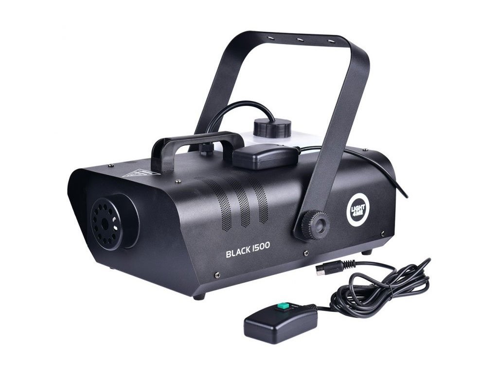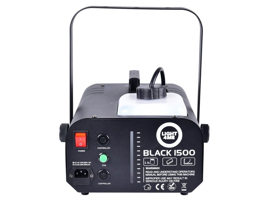 LIGHT4ME BLACK 1500 to profesjonalny i bardzo wydajny generator dymu (wytwornica mgły) o mocy 1500 watów i wysokiej wydajności, z możliwością sterowania za pomocą przewodowego i bezprzewodowego pilota. Działa doskonale na małych scenach muzycznych i teatralnych, w klubach tanecznych i dyskotekach, a także podczas różnego rodzaju imprez okolicznościowych. Wytwornica dymu jest gotowa do pracy w zaledwie 4 minuty, a zastosowanie czujnika poziomu cieczy i nowoczesnej technologii ogrzewania chroni element grzejny przed zatkaniem. Funkcja elektronicznego termostatu umożliwia wytwarzanie dymu w dowolnym momencie po pierwszym nagrzaniu.
