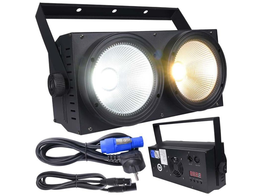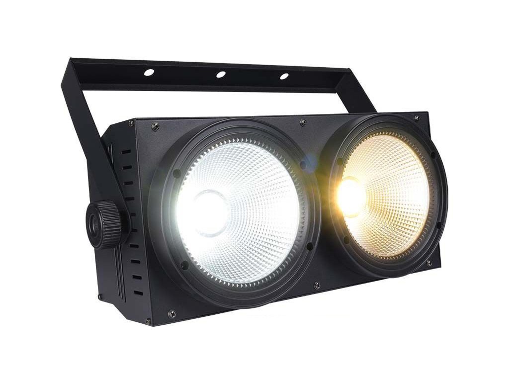 Light4Me Blinder LED 2x100W to profesjonalny oświetlacz sceniczny z zimnymi białymi i ciepłymi białymi diodami LED (zimna biel i ciepła biel) o zasięgu roboczym od 10 do 30 metrów, dzięki któremu doskonale oświetlimy scenę i stworzymy oszałamiające efekty stroboskopowe. To idealne narzędzie pracy dla oświetleniowców na koncertach, w domach kultury, teatrach, klubach tanecznych i dyskotekach, ale także dla mobilnych DJ-ów i zespołów eventowych, którzy chcą oświetlić swoje parkiety taneczne.