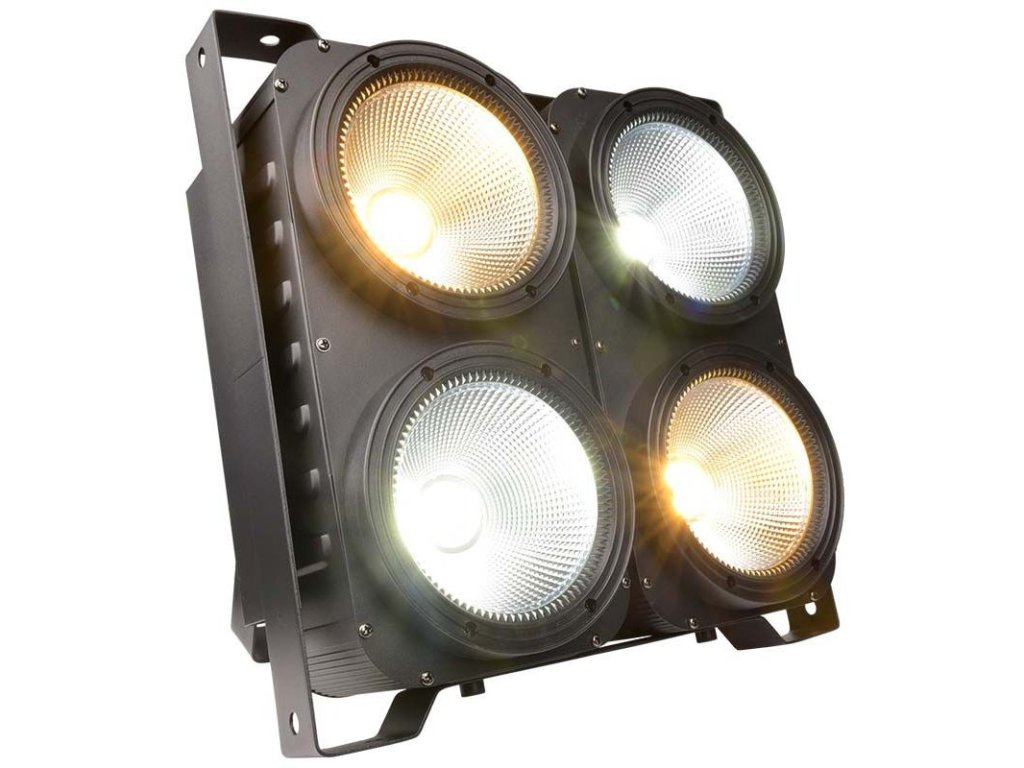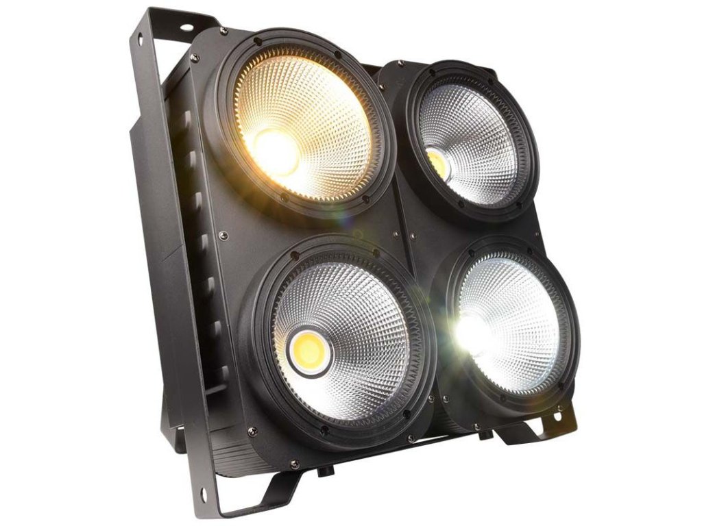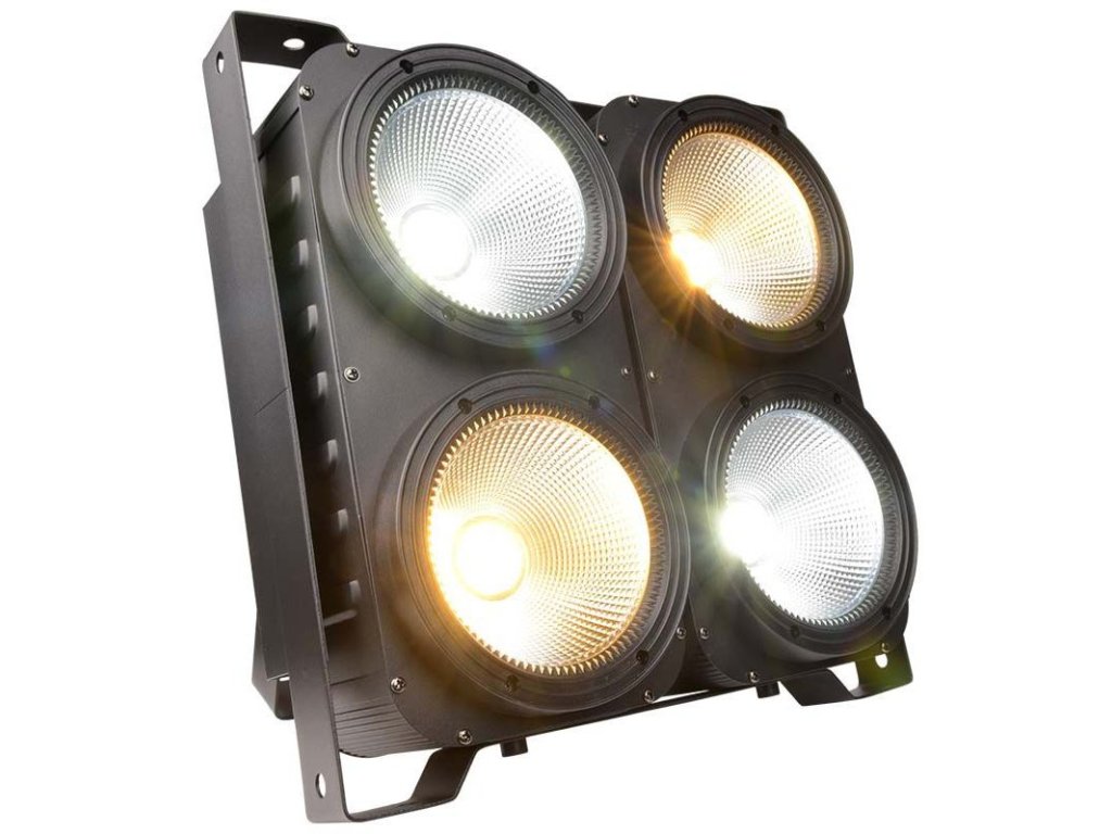 Light4Me Blinder LED 4x100W to w pełni profesjonalny reflektor sceniczny z czterema 100W diodami COB LED, pracującymi z ciepłym białym światłem i zimnym białym światłem. Iluminator pozwala stworzyć niesamowitą atmosferę podczas różnych typów akcji, oświetlić scenę i uzyskać stroboskopowe efekty. Jest niezastąpionym narzędziem pracy dla oświetleniowców na koncertach, podczas występów w domach, domach kultury, teatrach, klubach tanecznych i dyskotekach, a także dla mobilnych DJ-ów i zespołów eventowych. Jeśli potrzebujesz intensywnie oświetlić podium, parkiet taneczny lub jakiekolwiek wnętrze, Light4Me Blinder LED 4x100W jest dla Ciebie na pewno światłem punktowym.