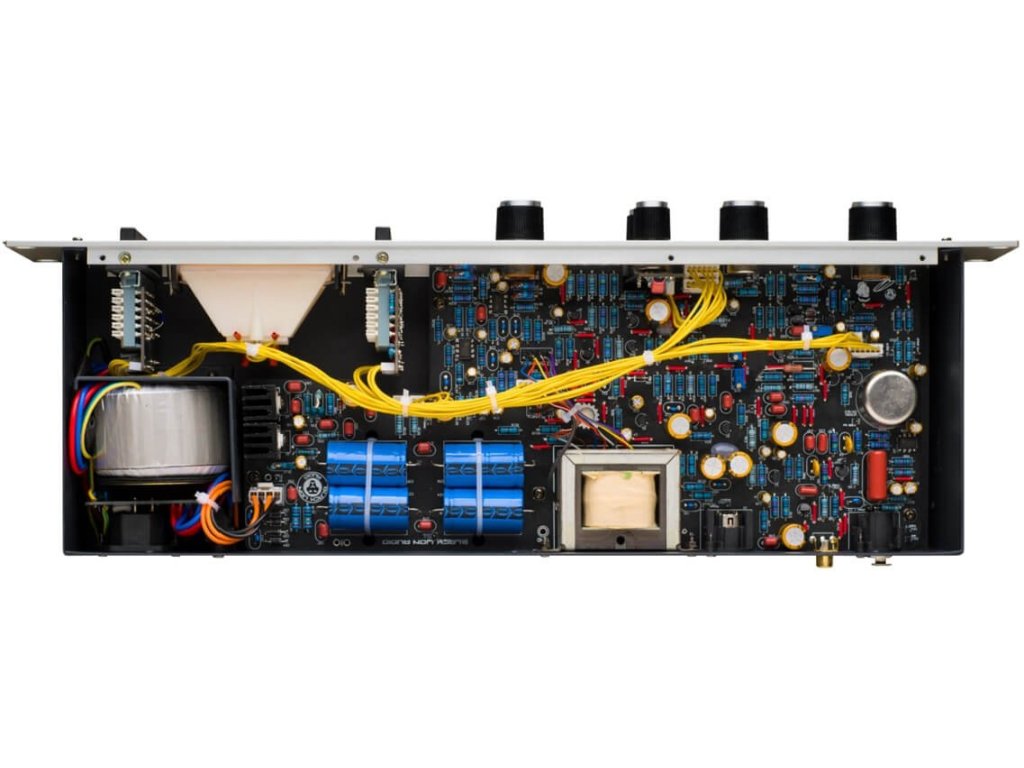 Wewnętrzne obwody są w pełni dyskretne, zbudowane z pojedynczych, wysokiej jakości komponentów dobieranych z serii o najniższej tolerancji wartości. Rezystory o tolerancji 1%, kondensatory poliestrowe, liniowy zasilacz. W ten sposób uzyskuje się precyzyjne "działanie" i jednocześnie długotrwałą stabilność.