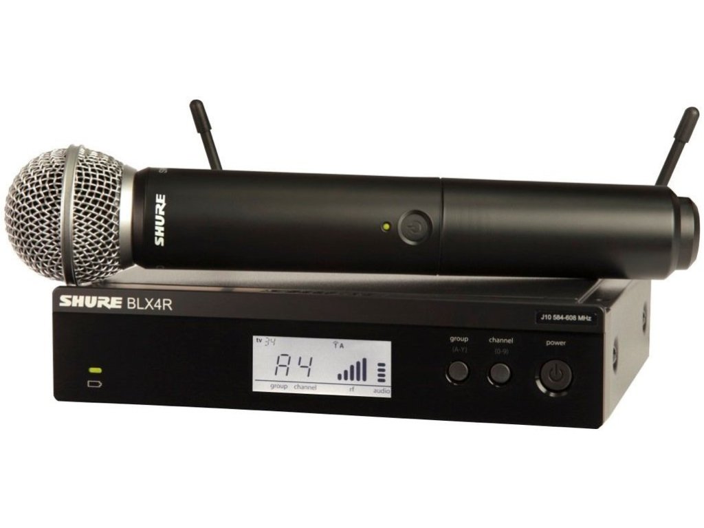SHURE BLX24RE/SM58 to bezprzewodowy zestaw przeznaczony do nagłaśniania wokalu na żywo. Składa się z nadajnika ręcznego BLX2 wyposażonego w kapsułę mikrofonową SM58 oraz odbiornika analogowego BLX4R. Zestaw pracuje w paśmie UHF na częstotliwościach 518 – 542 MHz. Kardioidalna charakterystyka kierunkowa mikrofonu SM58 umożliwia precyzyjne skierowanie na źródło dźwięku, eliminuje niepożądane przesłuchy i minimalizuje zabarwienie sygnału podczas jego nagrywania poza osią. Odbiornik diversity ze zintegrowanymi antenami gwarantuje bardzo dobrą stabilność transmisji. W zestawie znajduje się kompletne wyposażenie do montażu odbiornika w racku.