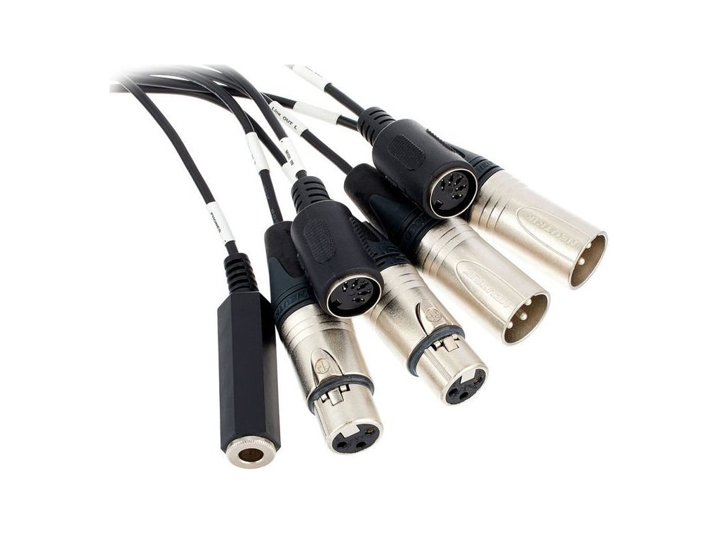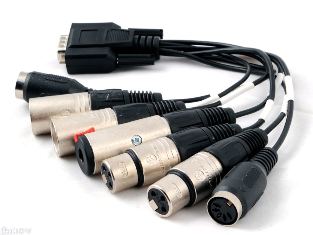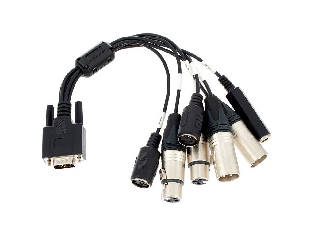 Opcjonalny kabel break-out dla HDSP 9632. W porównaniu ze standardowym kablem dostarczanym z kartą oferuje symetryczne rozwiązanie 2x analog in/out jako 4x złącza XLR Neutrik oraz Neutrick Jack z bezpiecznikiem i 2x MIDI.