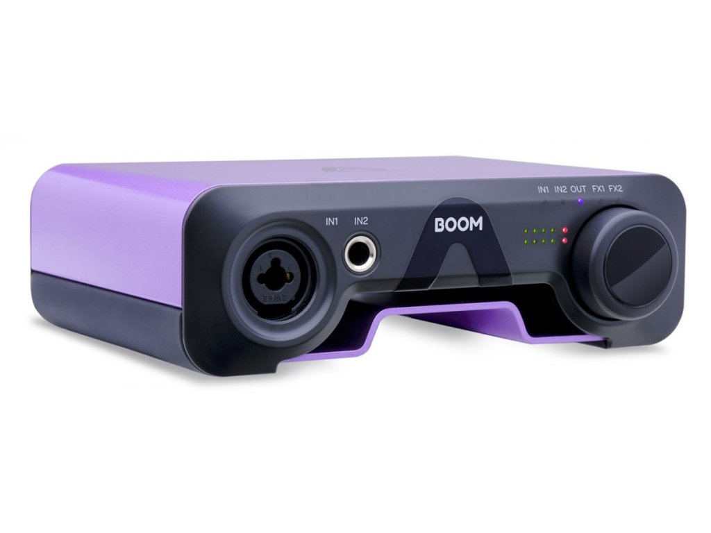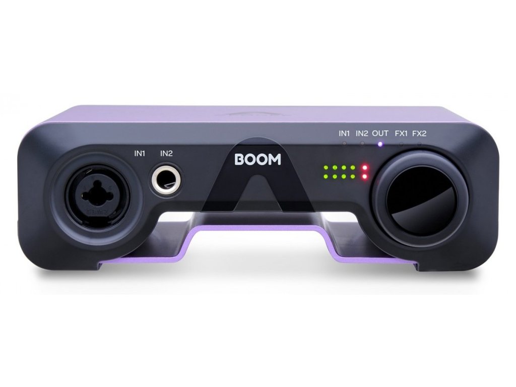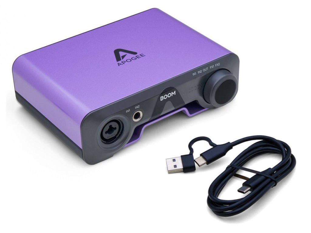 Apogee Boom to interfejs audio z 2 wejściami i wyjściami z wbudowanymi, wysokiej jakości cyfrowymi procesorami sygnałowymi (DSP). Solidna stalowa obudowa dokładnie chroni obwody wewnętrzne, a gumowe nóżki na spodzie utrzymują go na miejscu. Z przodu Boom ma gniazdo 1/4 cala i wejście XLR, a z tyłu lewe i prawe zbalansowane wyjście wraz z wyjściem słuchawkowym. Apogee Boom jest również zasilany z magistrali, co eliminuje potrzebę zewnętrznego zasilania.