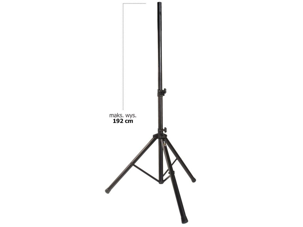 Dodatkową zaletą statywu kolumnowego STAND4ME BOX3 jest jego maksymalna wysokość 192 cm. Dzięki temu stojak można łatwo wykorzystać jako statyw oświetleniowy, dokupując odpowiedni drążek lub adapter. Po zakończeniu imprezy statyw składa się do wysokości 104 cm, co jest bardzo wygodne podczas transportu.