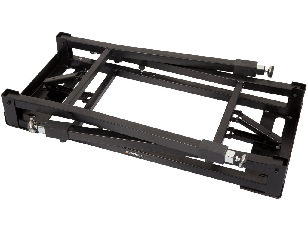 BP100SN to statyw klawiszowy z czterema nogami i w pełni regulowaną szerokością i wysokością. Cały statyw można wygodnie złożyć, a precyzyjne wyważenie statywu umożliwiają wysuwane chromowane nóżki z końcówkami o regulowanej wysokości.