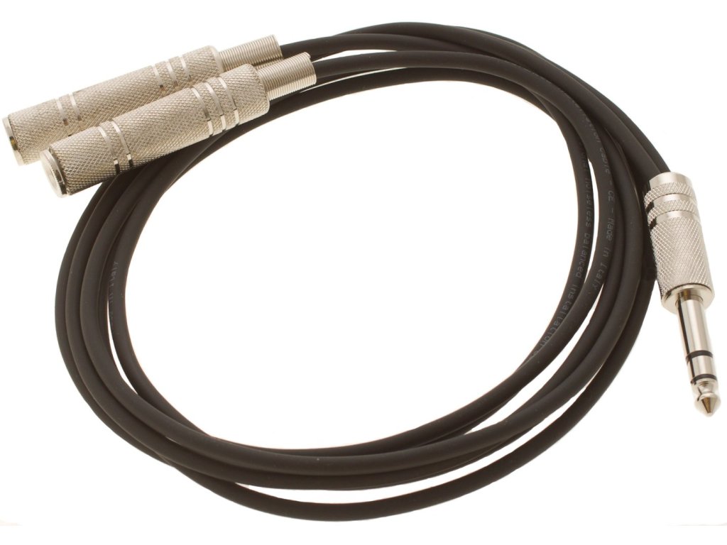 Kabel połączeniowy z wtykiem stereo 6.3 mm i dwoma gniazdami mono 6.3 mm, kabel ekranowany.