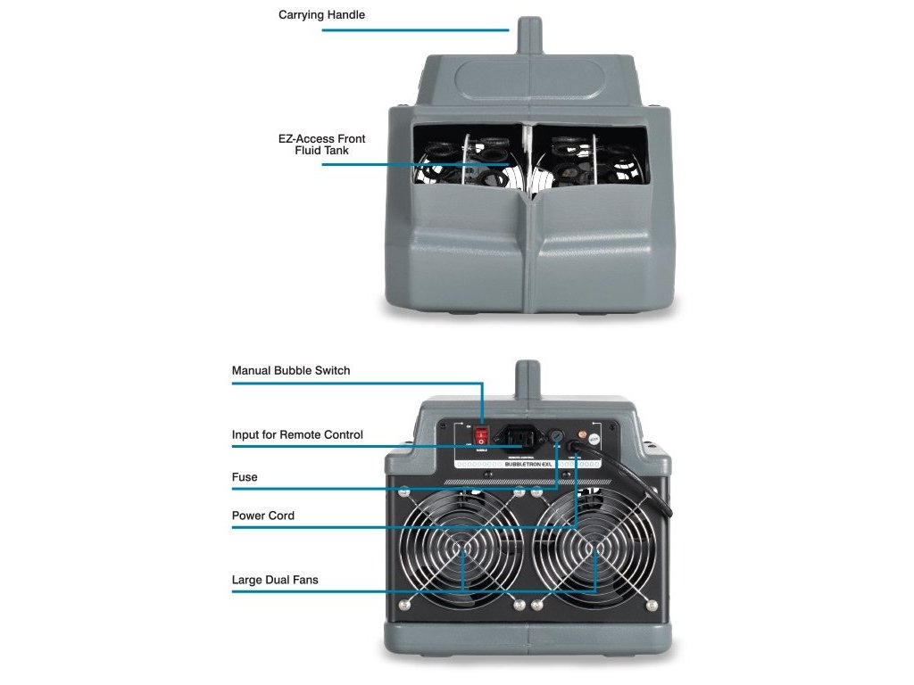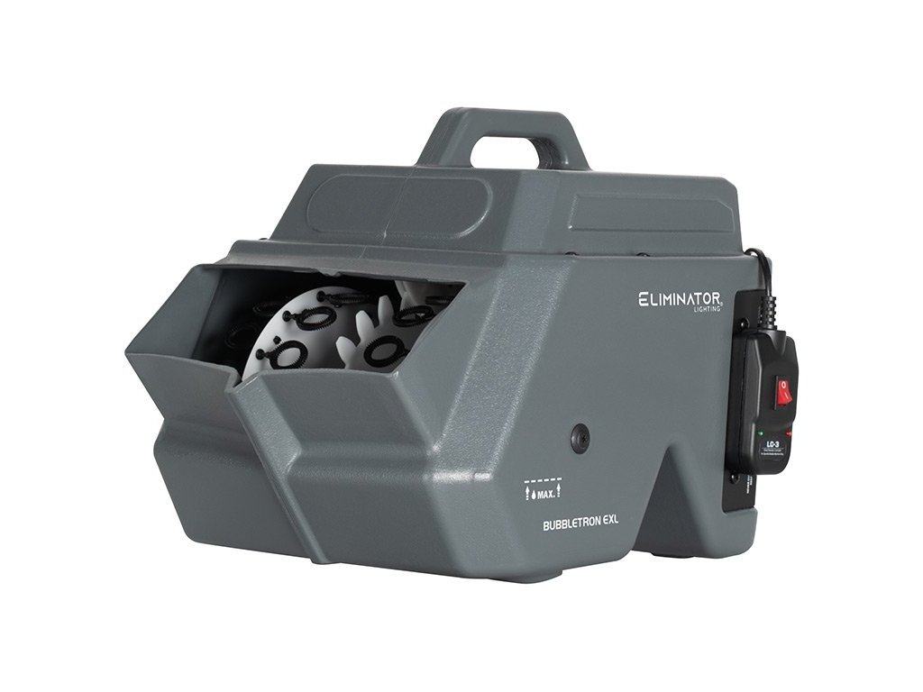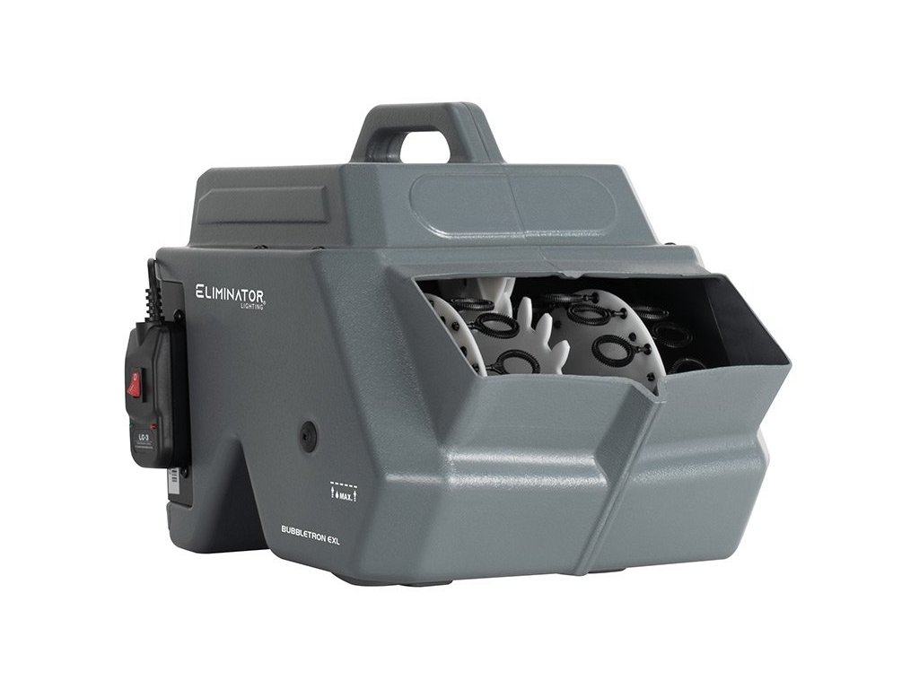 Wszyscy kochają bańki! Eliminator Lighting Bubbletron EXL to przenośna, wysokowydajna maszyna do robienia baniek mydlanych z wyjątkowo dużą, wytrzymałą plastikową obudową i przednim zbiornikiem na płyn EZ-Access. Dzięki dwóm szybkim wentylatorom i dwóm kołom do baniek mydlanych wytwarza setki baniek na minutę. Nierdzewne plastikowe części, wyłącznik i uchwyt do przenoszenia ułatwiają użytkowanie. W zestawie znajduje się przewodowy pilot zdalnego sterowania o długości 3 m.