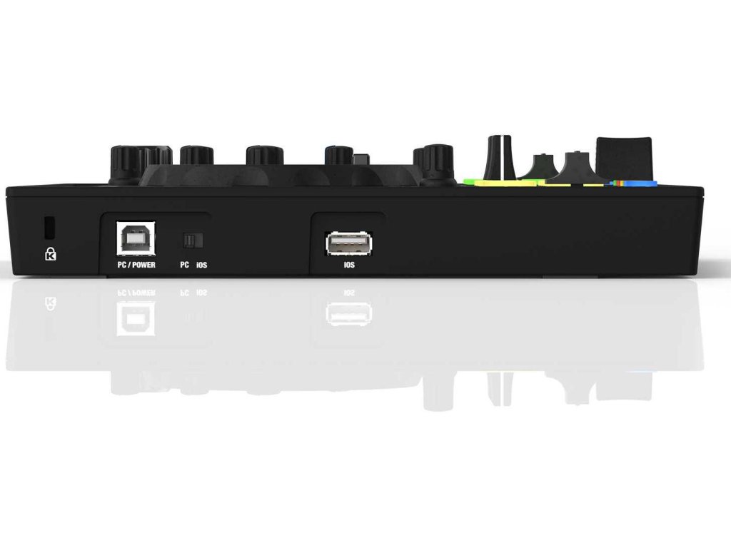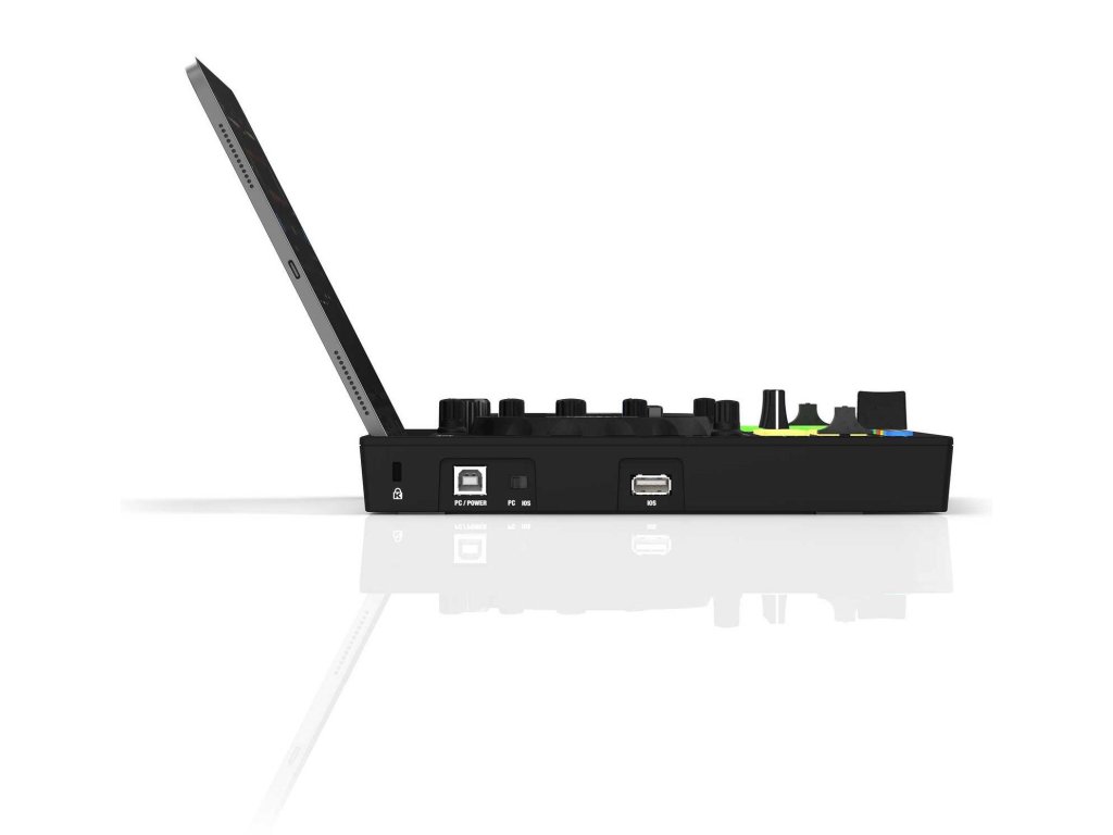 Buddy oferuje również elastyczną łączność, a ponadto działa w trybie Plug&Play, dzięki czemu nie trzeba instalować żadnych sterowników systemowych. Znajdziesz tu porty USB dla urządzeń PC i iOS, a do szczegółowego monitoringu możesz wykorzystać wyjście słuchawkowe i stereofoniczne wyjście RCA dla monitorów odsłuchowych. Tylna część kontrolera zawiera zintegrowany uchwyt na podłączony tablet lub smartfon.