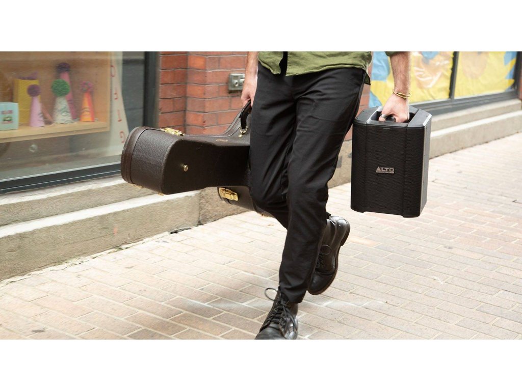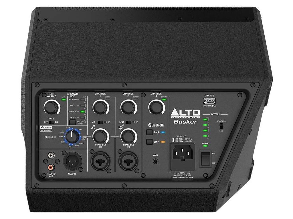 Alto Professional Busker to zasilany bateryjnie głośnik PA dla aktywnych muzyków w trasie, którzy wymagają najwyższej jakości dźwięku w przenośnym rozwiązaniu, które sprawdzi się na każdej scenie. Dzięki zoptymalizowanemu połączeniu głośnika niskotonowego i wysokotonowego o mocy do 200 W (szczytowej), Busker zapewnia czysty, skoncentrowany dźwięk, który sprawi, że Twoja muzyka zabłyśnie w każdym otoczeniu. Podłącz mikrofony i instrumenty lub inne urządzenia za pomocą zintegrowanego trzykanałowego miksera z łatwo dostępnymi elementami sterującymi do regulacji głośności bez przerywania odtwarzania muzyki.
