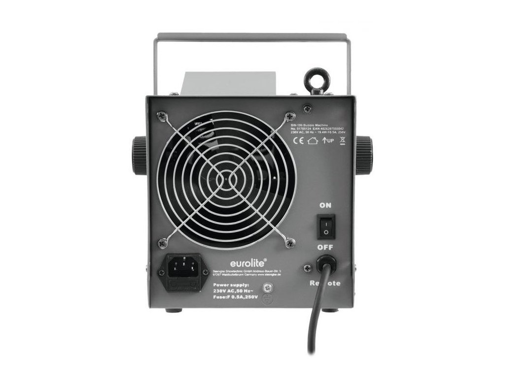 Mała wytwornica baniek mydlanych odpowiednia do małych dyskotek, klubów tanecznych, na imprezy i do użytku domowego. Wydajność za pomocą dwóch obracających się kółek „bubble”, praca ciągła, zbiornik na 0,75l płynu, sterowanie urządzeniem możliwe jest tylko za pomocą sterownika kablowego. Uchwyt do zawieszania ułatwiający instalację i obsługę. Wymiary 345 x 225 x 242 mm, waga 4 kg.