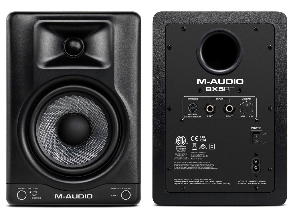 Kompaktowa para aktywnych monitorów studyjnych M-Audio BX5 BT łączy profesjonalne brzmienie i nowoczesną łączność z możliwością bezprzewodowego przesyłu przez Bluetooth 5.0 i precyzyjnym sterowaniem DSP. Oferuje wysoką precyzję w miksowaniu, grach i produkcji multimediów w małych pomieszczeniach, a aplikacja M-Audio Studio Control umożliwia szczegółowe ustawienie EQ i zapisywanie presetów. Wzmacniacz dla obu monitorów jest zintegrowany w aktywnym głośniku.