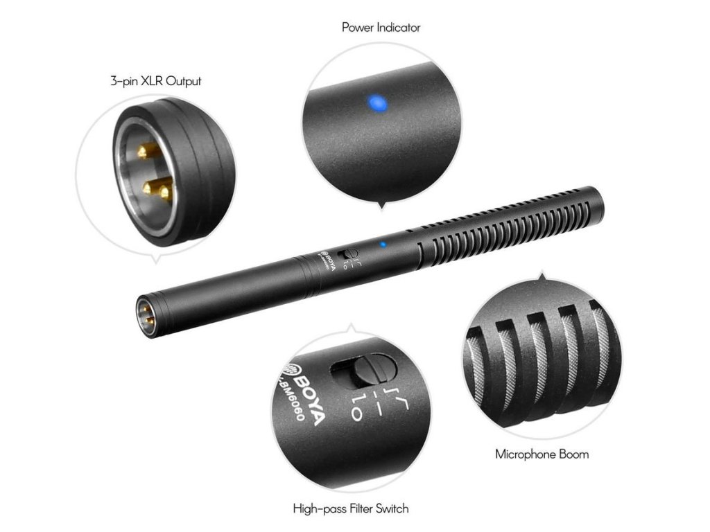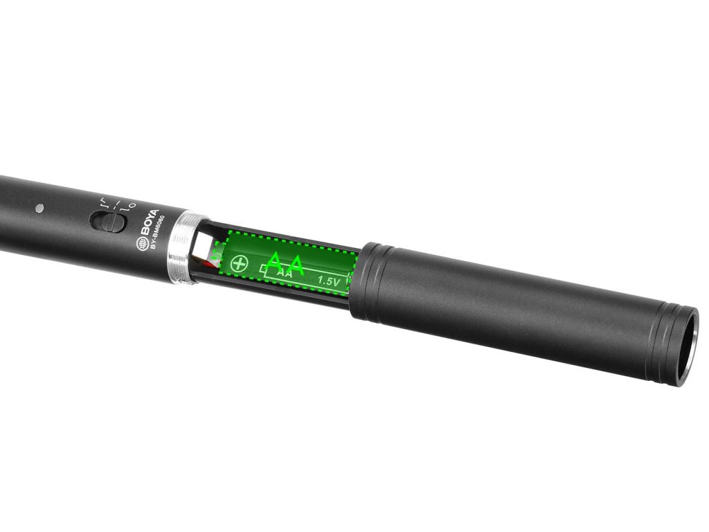 BY-BM6060 to mikrofon typu Shotgun z kapsułą pojemnościową i superkardioidalną charakterystyką kierunkową. Nadaje się do różnych zastosowań, od filmów niezależnych, programów telewizyjnych po filmy dokumentalne. 3-pinowe wyjście XLR ITS jest zgodne z zasilaniem phantom 24-48 V. Jeśli twoje urządzenia nie mają zasilania phantom, BY-BM6060 może być zasilany jedną baterią AA.