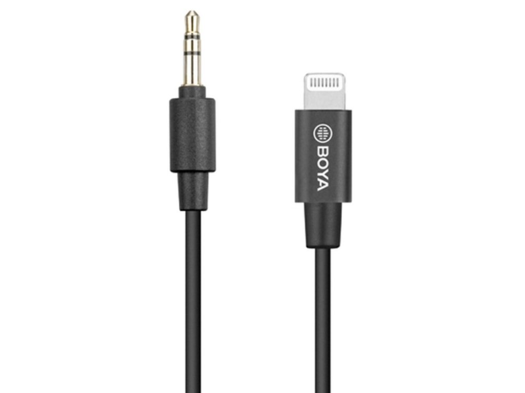 - Przejściówka Boya BY-K1 jest wyposażona w męskie złącze Lightning i męskie złącze 3,5mm TRRS, dzięki czemu niezawodnie rozwiązuje problemy z nieprawidłowymi końcówkami kabli
