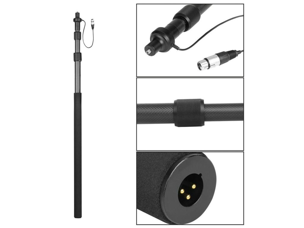 - Ta teleskopowa tyczka zapewnia przedłużenie do 2,5 m i oferuje nośność 3 kg oraz 3 teleskopowe sekcje zapewniające doskonałe nagrywanie dźwięku