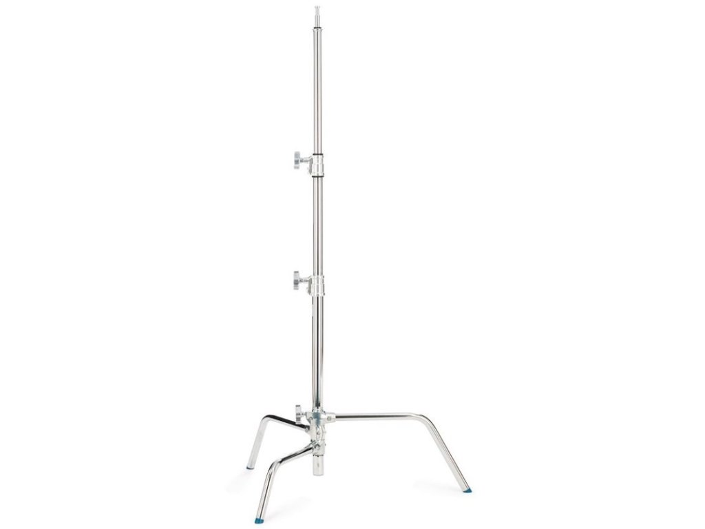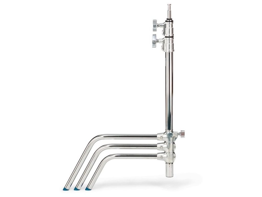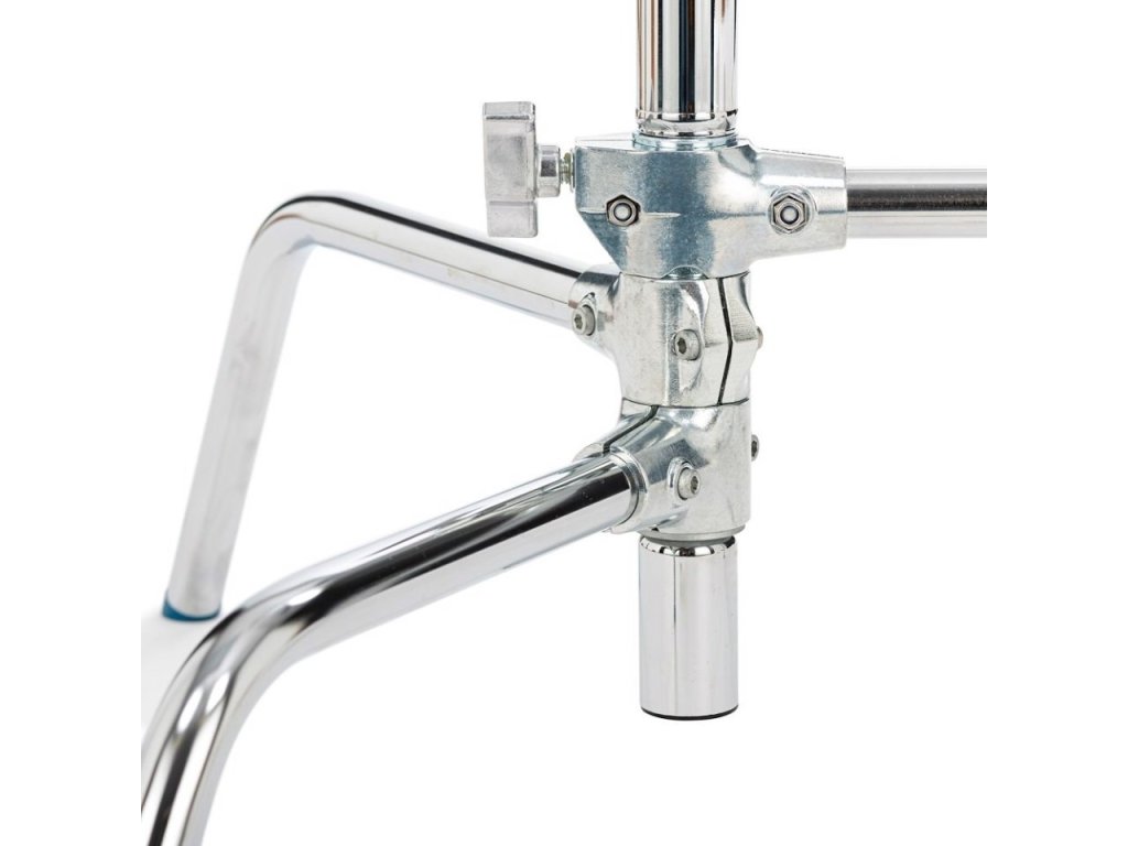 Chromowany stalowy statyw z 3 sekcjami. Podstawa jest odłączana i umożliwia łatwy transport. Ten statyw ma maksymalny udźwig 10 kg i maksymalną wysokość 1,55 m. Statyw jest również dostępny w kolorze czarnym.