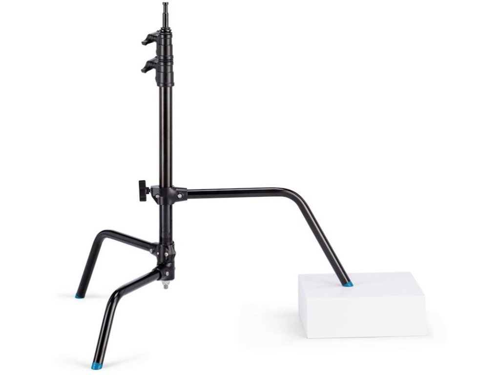Czarny stalowy statyw z 3 sekcjami. Wyposażony w 1 przesuwną nogę, która umożliwia używanie statywu na nierównej powierzchni. Statyw ten ma maksymalną nośność 8 kg i maksymalną wysokość 1,75 m. Statyw jest również dostępny w kolorze chromu.