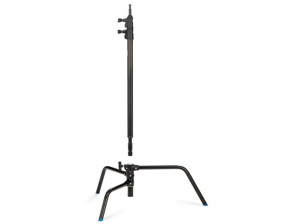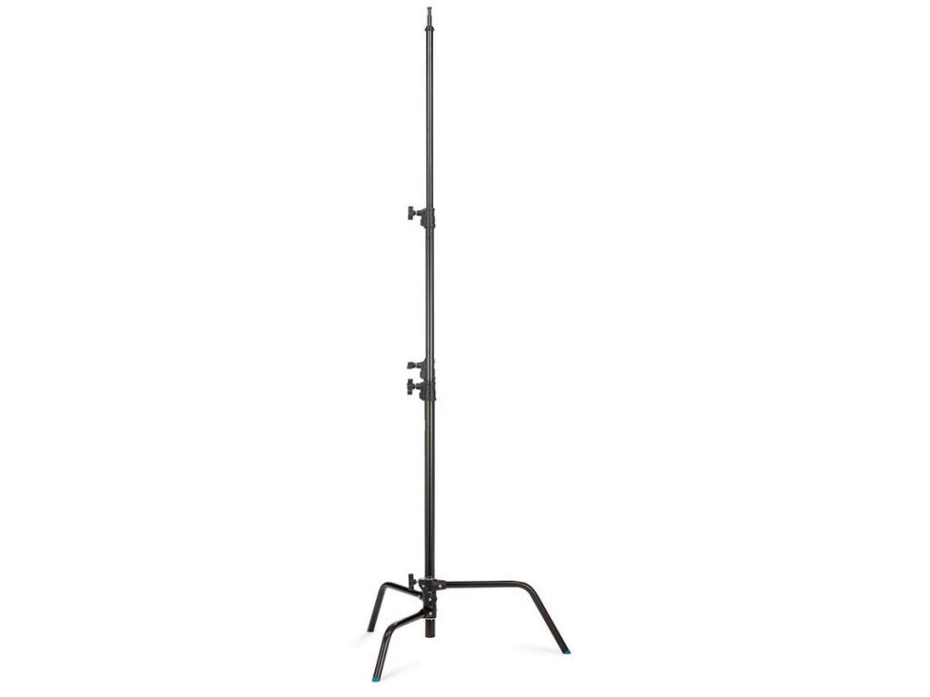 Statyw z chromowanej stali w kolorze czarnym, składający się z 3 sekcji. Podstawa jest odłączana dla łatwego transportu. Ten statyw ma maksymalną nośność 10 kg i maksymalną wysokość 2,22 m. Statyw jest również dostępny w wersji z chromowanej stali. Nogi składają się na płasko, co ułatwia przechowywanie.