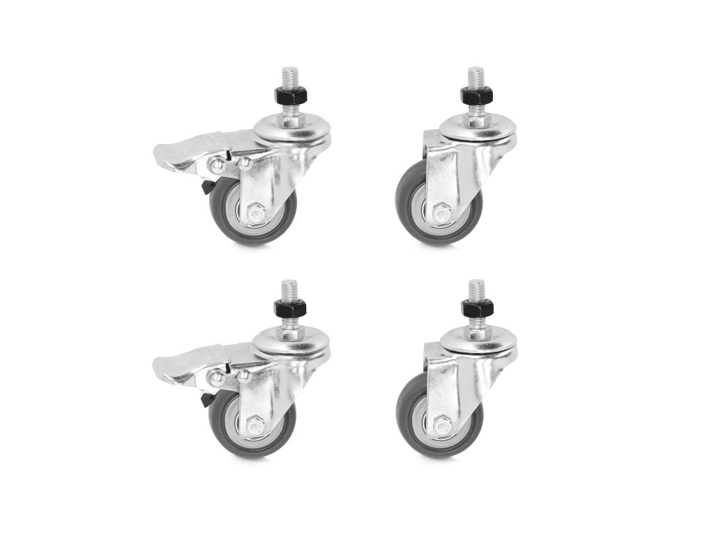 Ułatw sobie manipulację bębnami kablowymi. Ten łatwy w montażu zestaw kółek zamieni Twoje solidne bębny kablowe 4 STAR CD 450 i 4 STAR CD 650 w mobilne jednostki. Dzięki kółkom o średnicy 50 mm zapewnisz płynny i bezproblemowy ruch. Dwa z czterech kółek są dodatkowo wyposażone w zintegrowany hamulec postojowy, który w razie potrzeby gwarantuje maksymalną stabilność i bezpieczne zakotwiczenie.