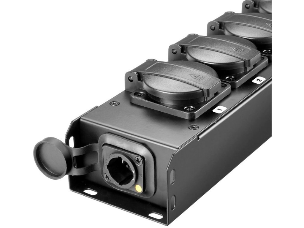 - Liczba gniazd (styk uziemiający / IEC 7/4): 6 x odchylana pokrywa Schuko + czarne i żółte zasilające I/O