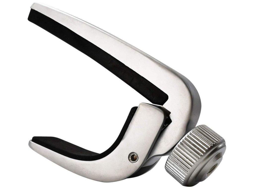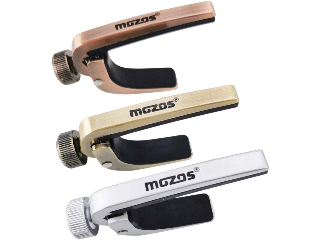 Kapodaster jest jednym z najczęściej używanych akcesoriów gitarowych. Ten cynkowany kapodaster marki Mozos wyróżnia się łatwością użycia na każdej gitarze z zaokrągloną podstrunnicą.