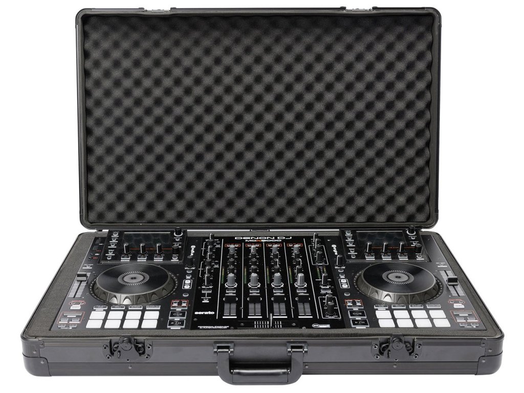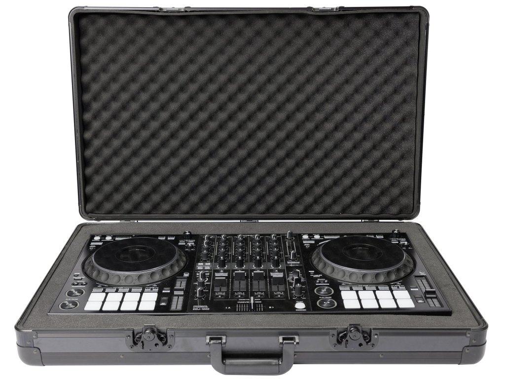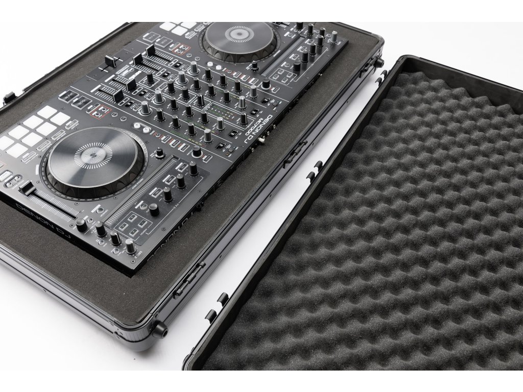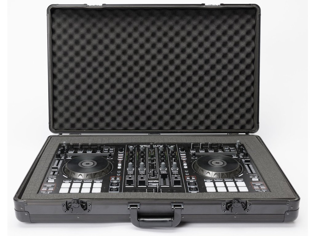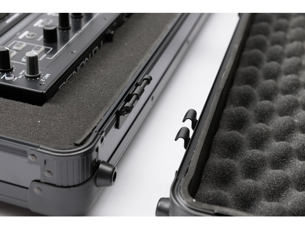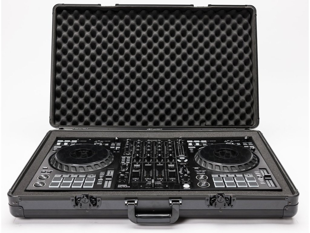 Nowa walizka CARRY LITE DJ-CASE XXL PLUS to bardzo lekkie i kompaktowe rozwiązanie do przenoszenia sprzętu DJ-skiego, dostępne w eleganckim, całkowicie czarnym, matowym wykończeniu. Konstrukcja CARRY LITE jest wykonana z laminowanych paneli MDF i anodowanych profili aluminiowych, wyposażona w w pełni wyściełane wnętrze ze zmienną pianką pick & pluck, która umożliwia tworzenie indywidualnych, dopasowanych przegródek dla kontrolerów DJ-skich różnych rozmiarów, takich jak Pioneer DDJ-FLX10, DDJ-FLX6, DDJ-1000, DDJ-SX2, DDJ-SX3, Denon MCX-8000 lub Denon MC-7000 lub kontrolerów DJ-skich o podobnych rozmiarach. Pianka pick & pluck składa się z dwóch oddzielnych warstw, które dają dodatkową możliwość stworzenia dodatkowego slotu pod kontrolerem do przechowywania laptopa lub kabli.