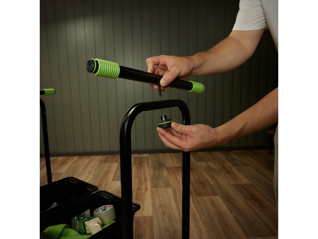 Przekształć swój wózek Gravity CART w mobilne miejsce pracy! Za pomocą zestawu CART L 01 AC1 SET 1 możesz w mgnieniu oka przekształcić swój istniejący wózek CART L 01 B w stabilną, mobilną powierzchnię roboczą. Zarówno pręty, jak i stół są wykonane ze stali malowanej proszkowo i - podobnie jak wszystkie stojaki Gravity - są wyjątkowo stabilne i mocne. W połączeniu z nimi osiąga się dużą maksymalną nośność górnej półki do 50 kg. Na dolnym poziomie można transportować do 120 kg. Podczas montażu przykręcane wsporniki są po prostu wsuwane w zagłębienie na środku stołu Rapid Desk, wózek jest rozkładany i rozciągany do teraz maksymalnego możliwego rozmiaru. Nie jest konieczne żadne dodatkowe mocowanie ani przykręcanie podpór.