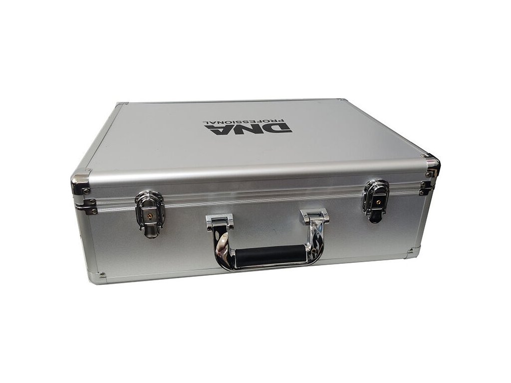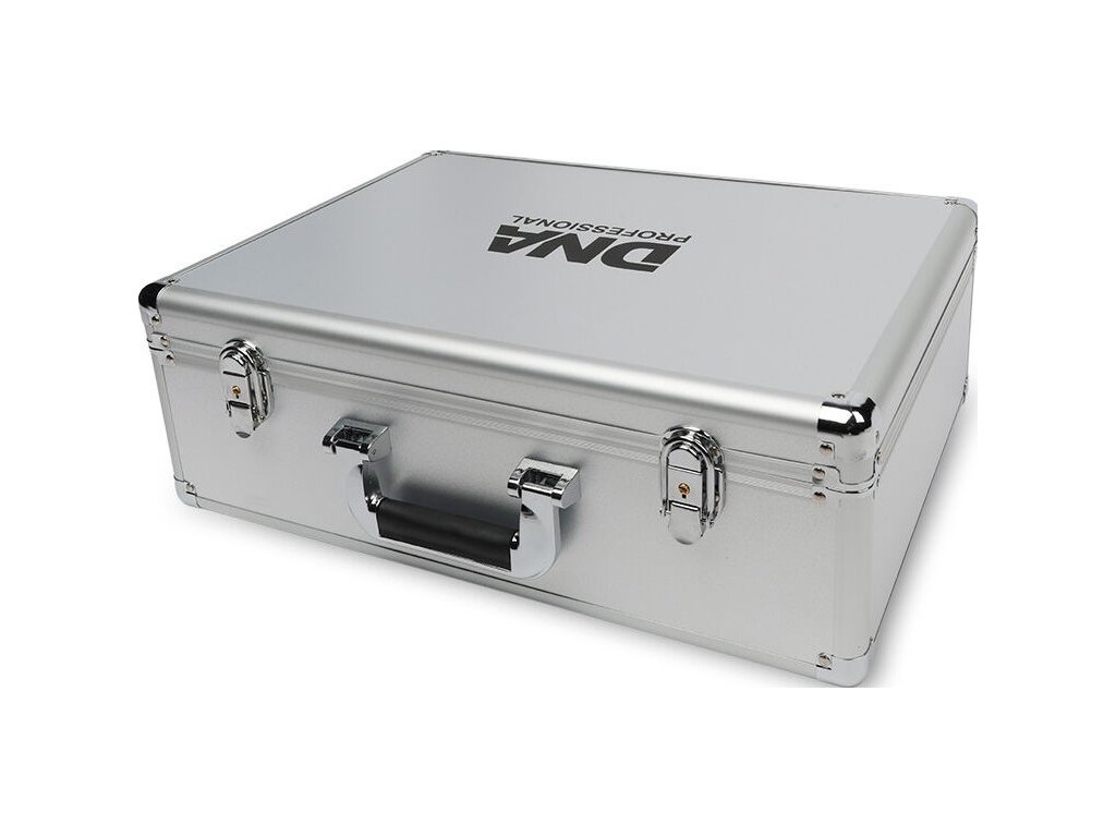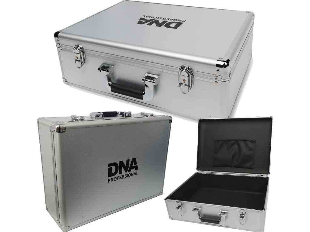 Walizka została wykonana z lekkiej, a zarazem wytrzymałej płyty drewnopochodnej z domieszką tworzywa sztucznego (PVC), która została estetycznie pokryta warstwą aluminium. Skrzynia wyposażona jest w praktyczny uchwyt, dwa zamki zatrzaskowe zamykane na klucz oraz wewnętrzną kieszeń. Krawędzie walizki zostały wzmocnione dodatkowymi listwami oraz okuciami. Jednostronnie otwierana klapa oraz dno walizki DNA wyściełane zostały miękką pianką, dzięki czemu przedmioty przechowywane i transportowane w jej wnętrzu są doskonale zabezpieczone przed wszelkimi uszkodzeniami.