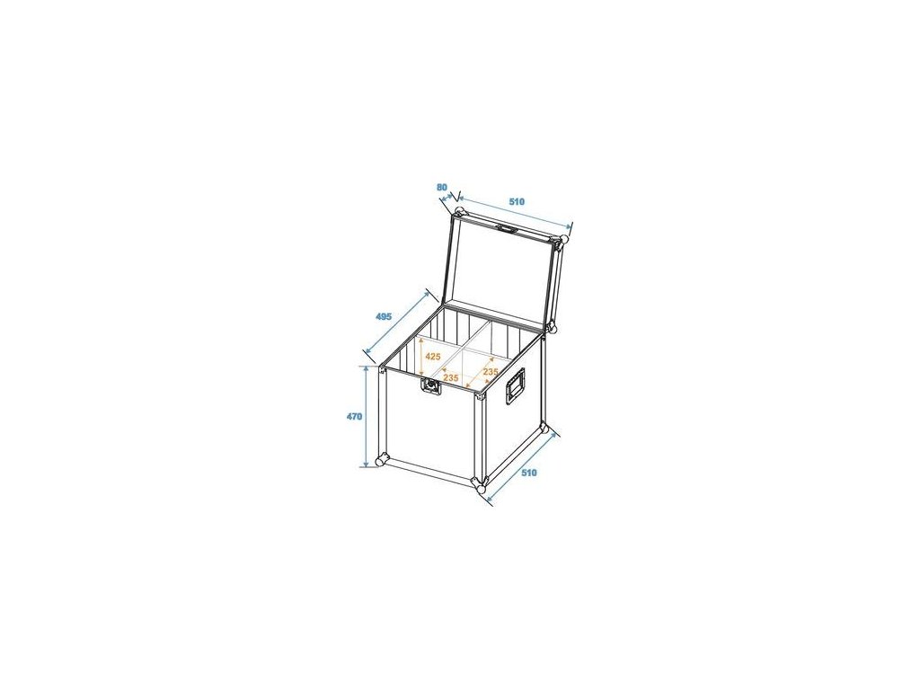Profesjonalny case transportowy na 4 długie reflektory LED PAR 64. Przestrzeń wewnętrzna jest podzielona na 4 oddzielne sekcje na reflektory. Krzyż dzielący można wyjąć, dzięki czemu case może być używany uniwersalnie również do innego sprzętu i akcesoriów. Wysoka jakość wykonania, wykonana z 7 mm laminowanej sklejki brzozowej w kolorze ciemnobrązowym. Wyściółka z plastazotu, okucia Adam Hall, rama aluminiowa 22 x 1,5 mm, małe kulkowe 3-stronne narożniki, 2 składane uchwyty, 2 zawiasy z ogranicznikiem, 1 zamek motylkowy.
