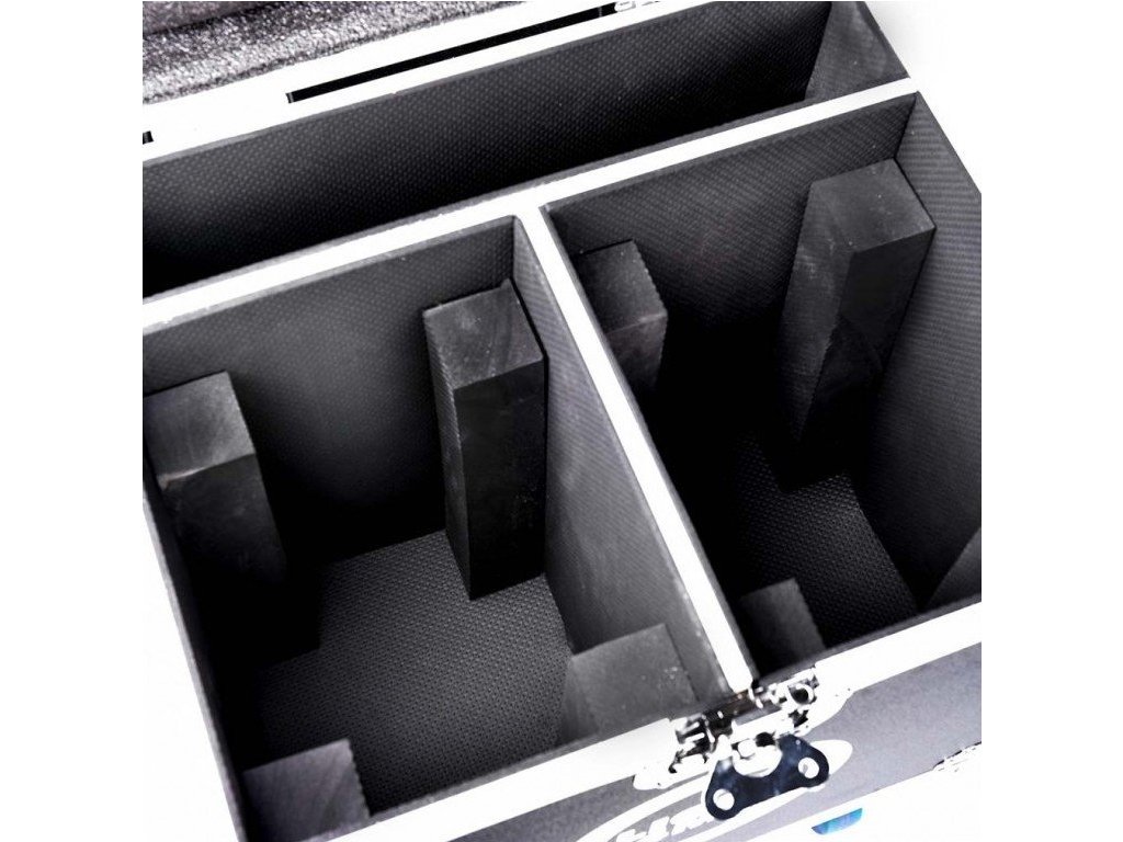 Kufer transportowy na głowice ruchome LIGHT4ME Rapid Spot 100 lub inne reflektory o podobnych wymiarach. Wykonany z grubej sklejki pokrytej PVC, z 4 kółkami, 2 uchwytami i solidnym zamkiem motylkowym.
