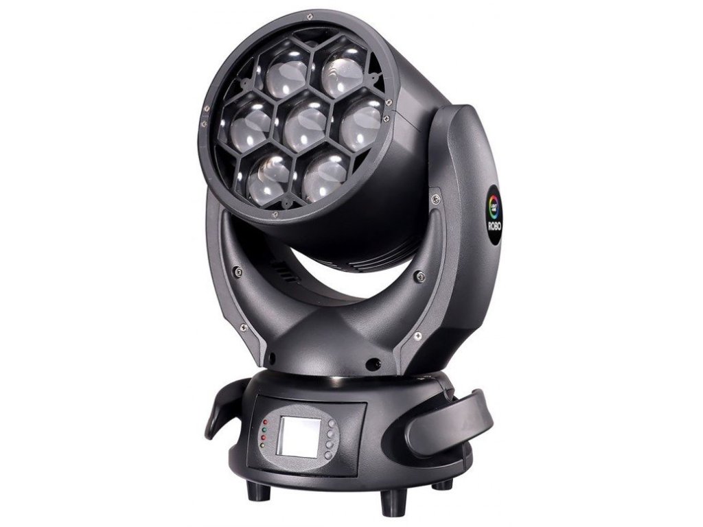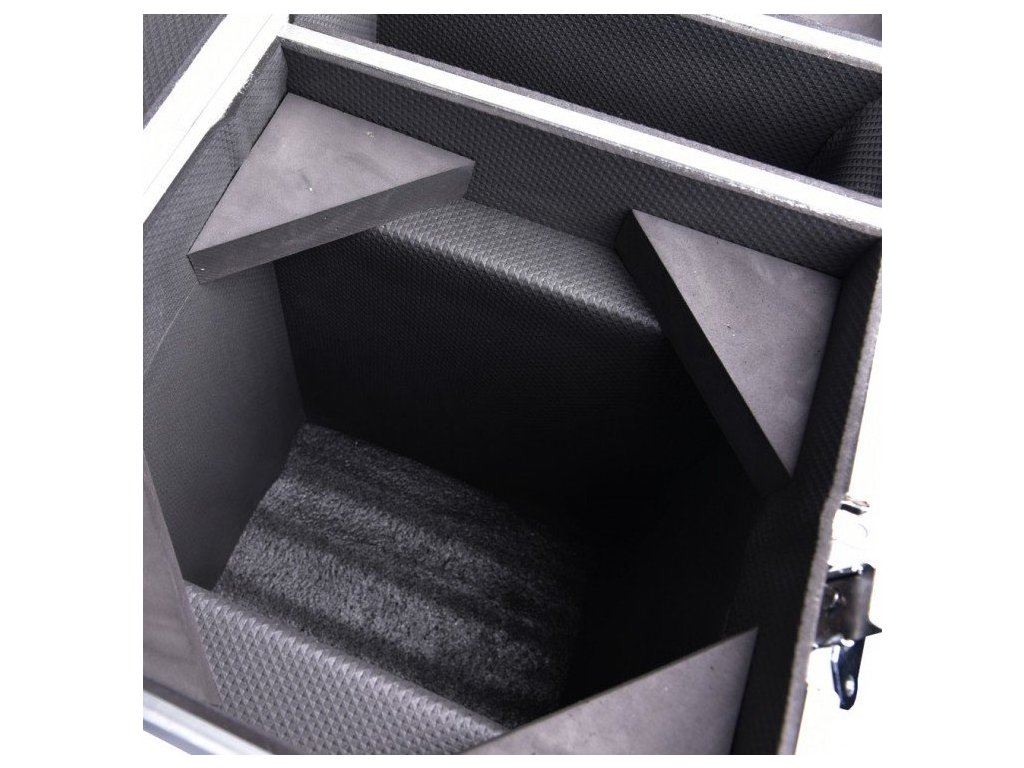 Kufer do przechowywania i transportu dwóch reflektorów Robo Wash zoom 740 lub urządzeń o identycznych wymiarach. Kufer został wykonany z wytrzymałej, grubej sklejki pokrytej wodoodpornym fornirem o strukturze plastra miodu. Krawędzie i rogi zostały wzmocnione solidną stalą. Obudowa ma na spodzie cztery obrotowe kółka (dwa z blokadą) i uchwyty po bokach. Wewnątrz kufra znajdują się dwie oddzielne przegródki na reflektory oraz węższa przegródka na kable lub inne akcesoria. Dwa zamki motylkowe chronią kufer przed przypadkowym otwarciem.