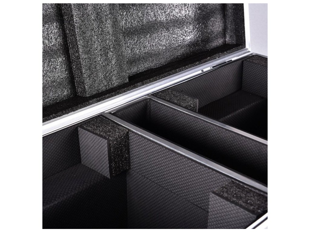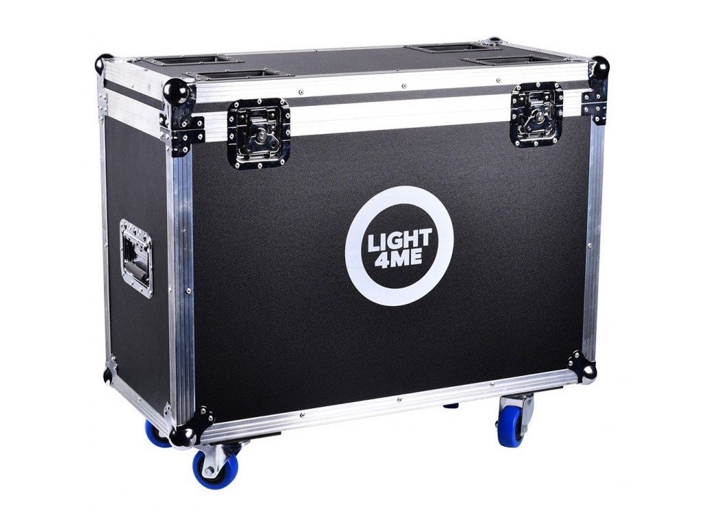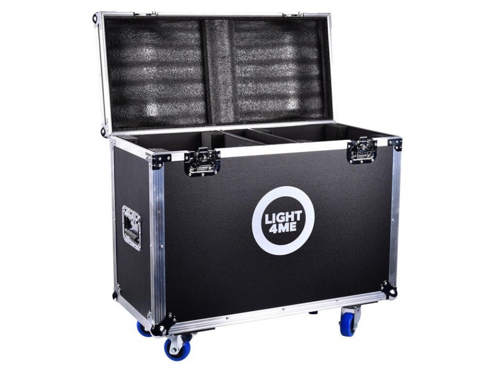 Profesjonalny i bardzo wytrzymały kufer na głowice ruchome LIGHT4ME Venom Zoom 250. Kufer wykonany jest z grubej sklejki o grubości 7 mm pomalowanej specjalną, wodoodporną farbą. Wieko jest zabezpieczone przed przypadkowym otwarciem dwoma solidnymi zamkami motylkowymi. Jego krawędzie są wzmocnione aluminiowymi profilami. W rogach znajdują się kulowe, chromowane osłony. Wnętrze wyłożone jest miękką pianką techniczną. Cztery obrotowe koła, w tym dwa z zamkami.
