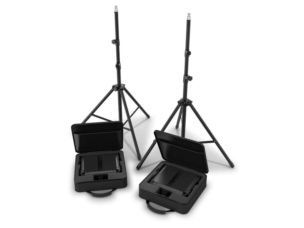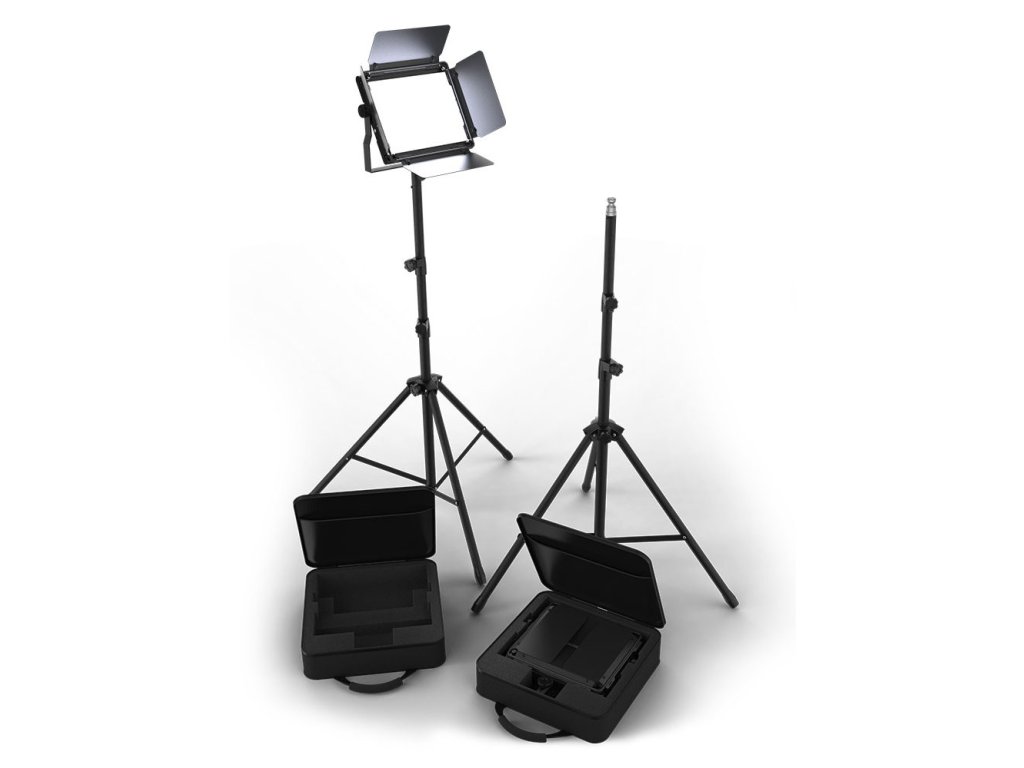 - W zestawie: 2 jednostki oświetleniowe (z klapkami kierunkowymi "barn doors"), 2 statywy, 2 zewnętrzne zasilacze, 2 torby transportowe, krótka instrukcja