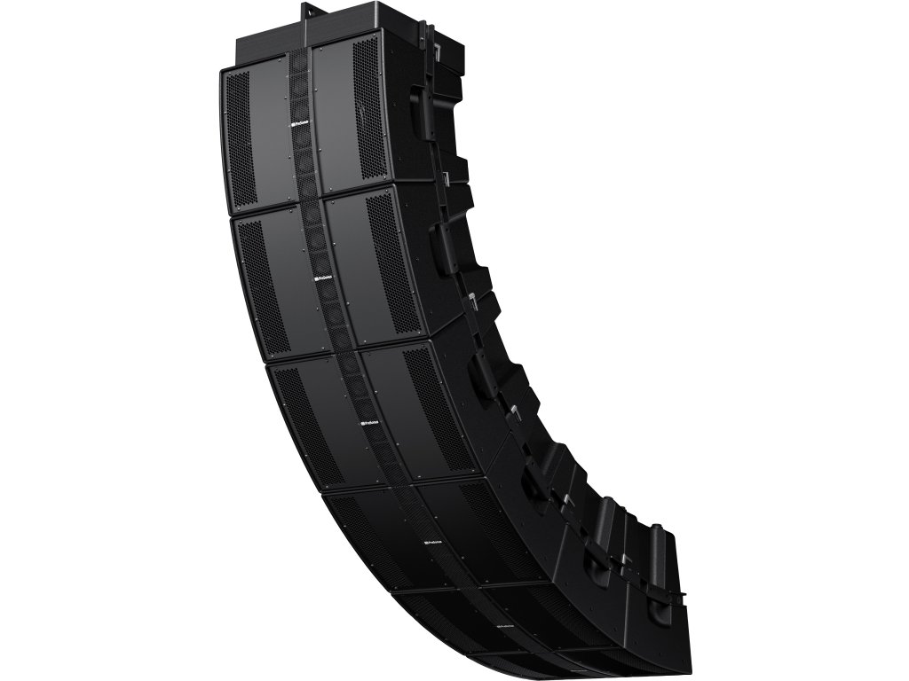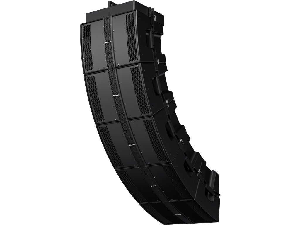 - Moduł array o ciągłej kierunkowości i stałej krzywiźnie, wyposażony w 6x 2" stożkowe drivery, rozprasza dźwięk poziomo pod kątem 120°