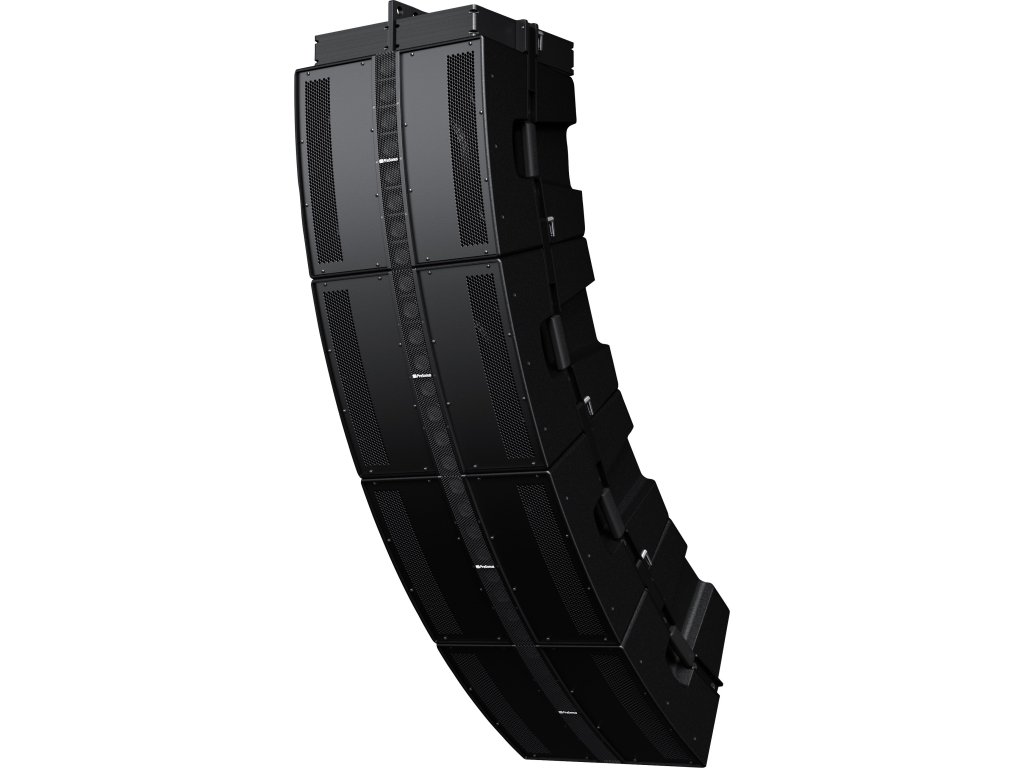 - Moduł array o ciągłej kierunkowości i stałej krzywej wyposażony w 8x 2" stożkowe drivery rozprasza dźwięk poziomo pod kątem 120°