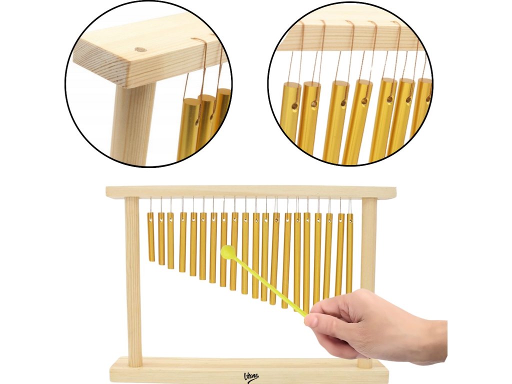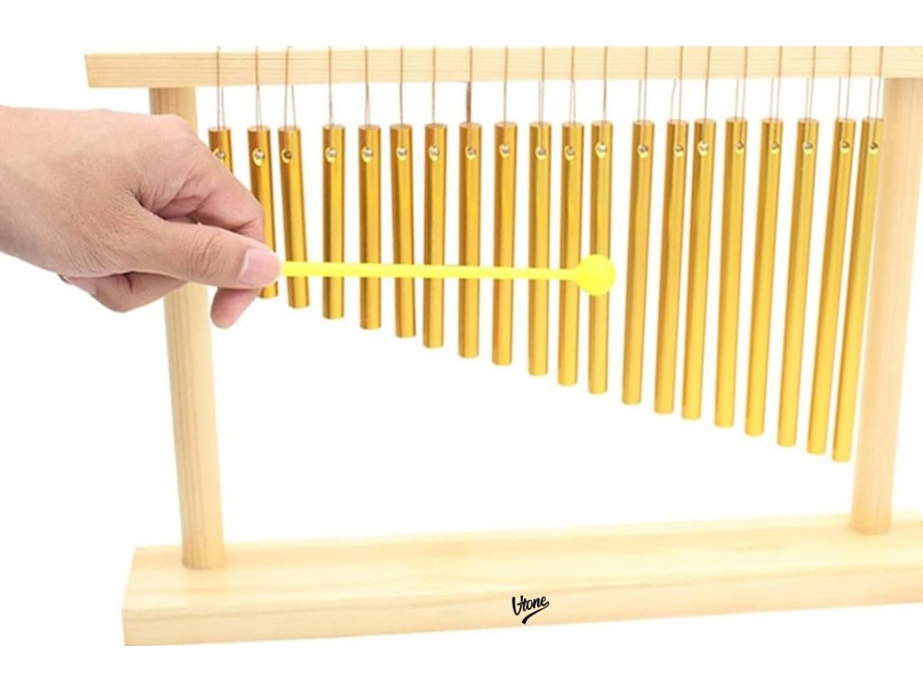 Pozłacane aluminiowe listewki nie tylko świetnie wyglądają, ale oferują także czysty, rezonujący dźwięk na najwyższym poziomie. W zestawie znajduje się wygodna pałeczka wykonana z wytrzymałego plastiku w żółtym kolorze, dla której w ramie przygotowano ergonomiczny uchwyt. To idealne rozwiązanie dla osób szukających niezawodnych dzwonków dla aranżacji muzycznych, rytmiki w edukacji lub relaksujących sesji dźwiękowych. Wypróbuj jakość V-TONE i przekonaj się, jak pięknie mogą brzmieć CH20.