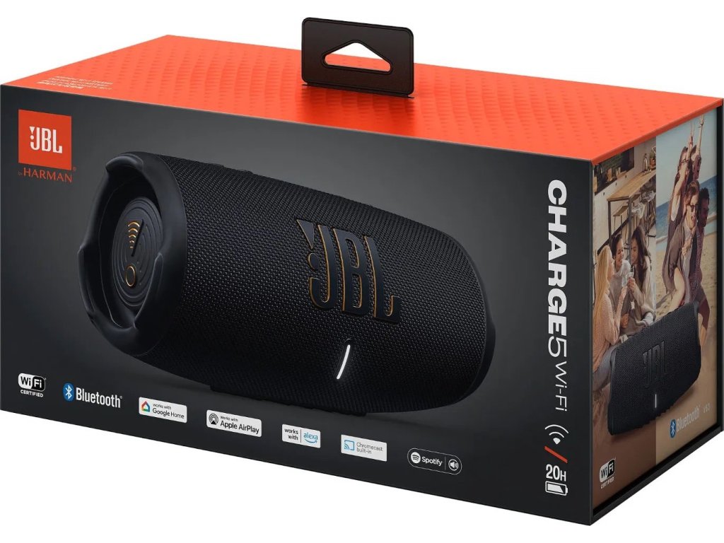 Słuchaj wszystkiego, co lubisz. JBL Charge 5 WI-FI zapewnia prostotę i elastyczność płynnego, otwartego ekosystemu strumieniowego, który obsługuje szeroką gamę usług. Możesz streamować muzykę przez AirPlay, Alexa Multi-Room Music, Chromecast built-in™ lub Spotify Connect. Ciesz się całą ulubioną zawartością audio, radiem internetowym i podcastami.