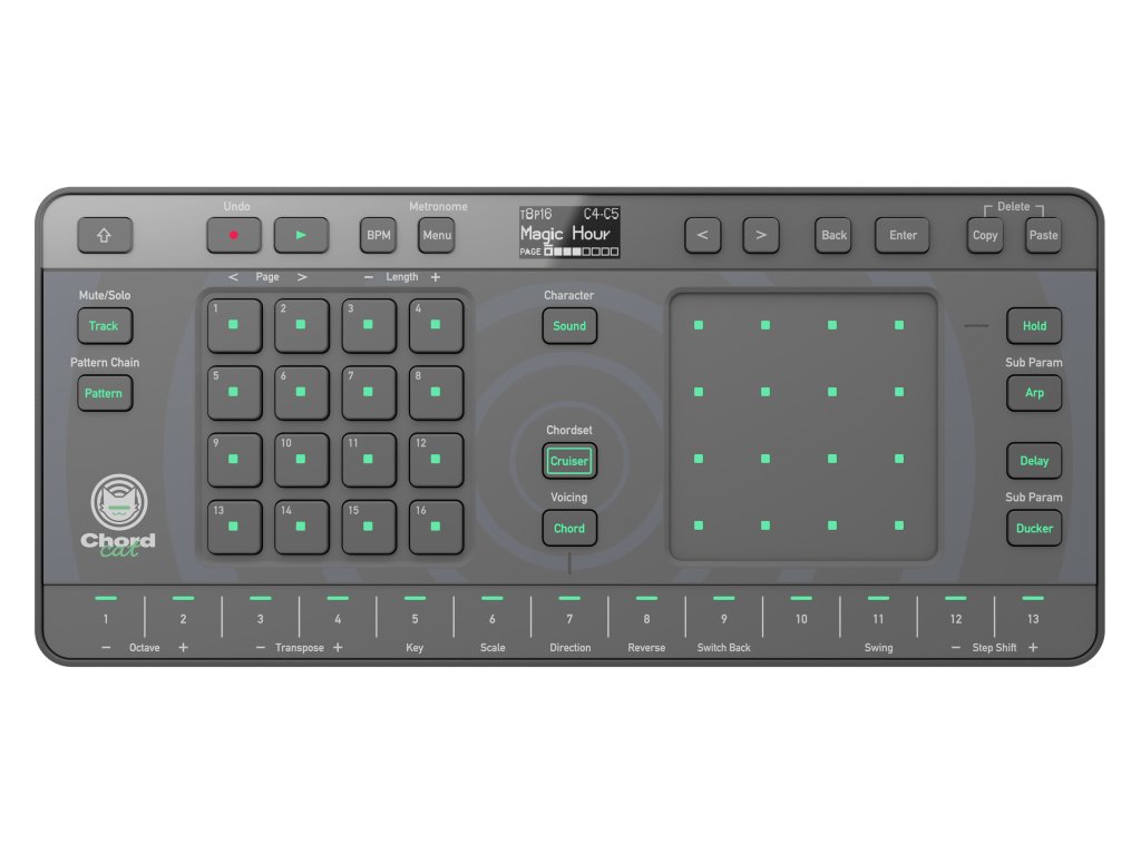 Szukasz inspiracji lub chcesz szybko rozwinąć pomysł muzyczny? Chordcat to kompaktowy groovebox, który umożliwia tworzenie nowych progresji akordów, nakładanie warstw dźwięków i budowanie całych utworów – niezależnie od tego, czy jesteś w domu, w studio, czy w podróży.