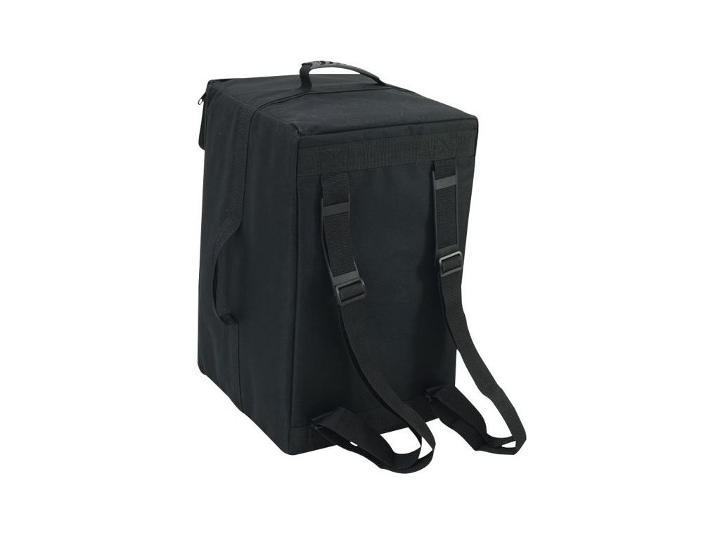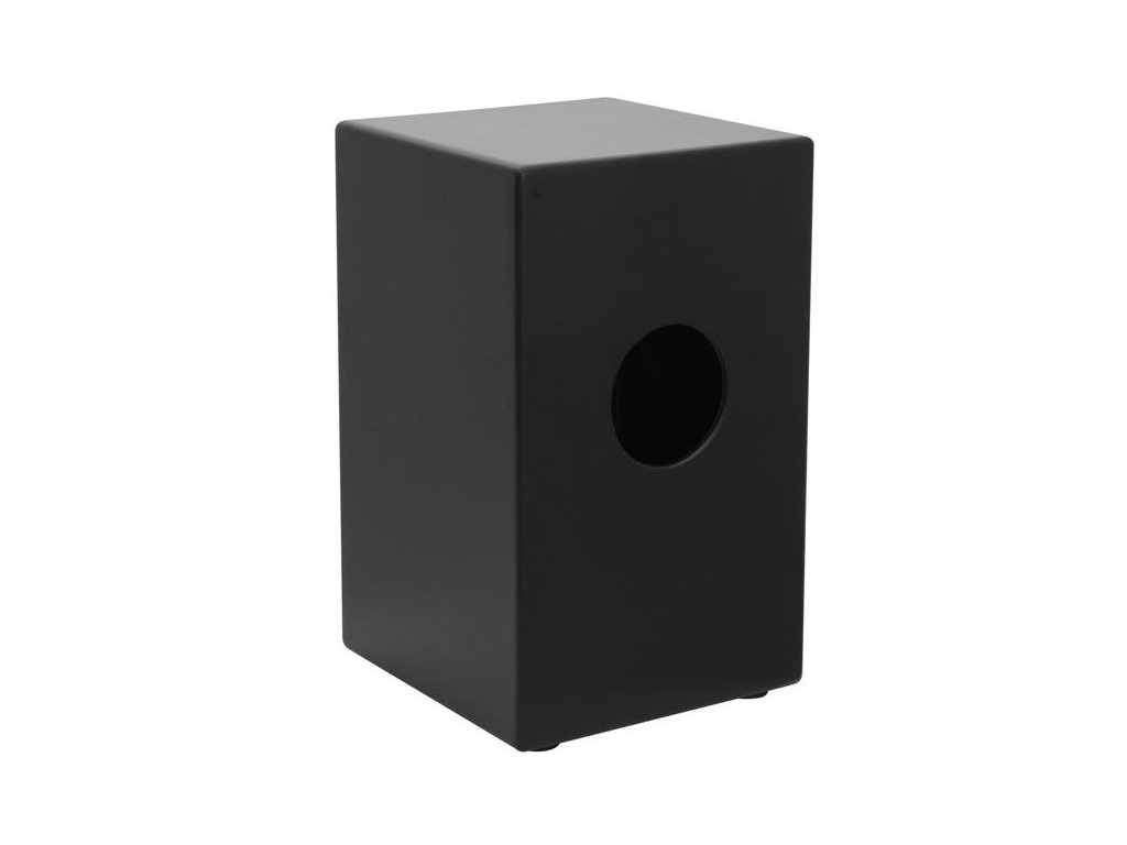 Design: miękka czerń. Korpus: sklejka, 13 mm. Powierzchnia uderzeniowa: klon. Oparcie: dąb. Wbudowany regulowany efekt perkusyjny. Rozmiar: 30 x 29 x 50 cm. 4 gumowe nóżki.