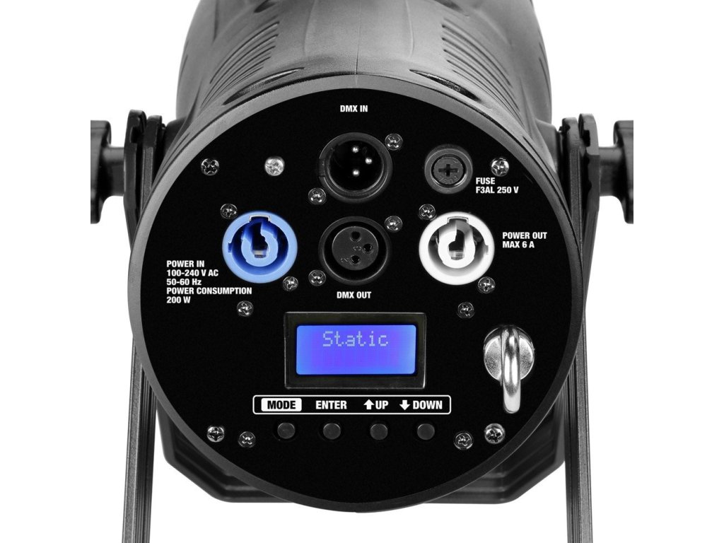 CL 200 G2 oferuje 6 trybów sterowania DMX, aktywację dźwiękiem i główne ściemnianie.