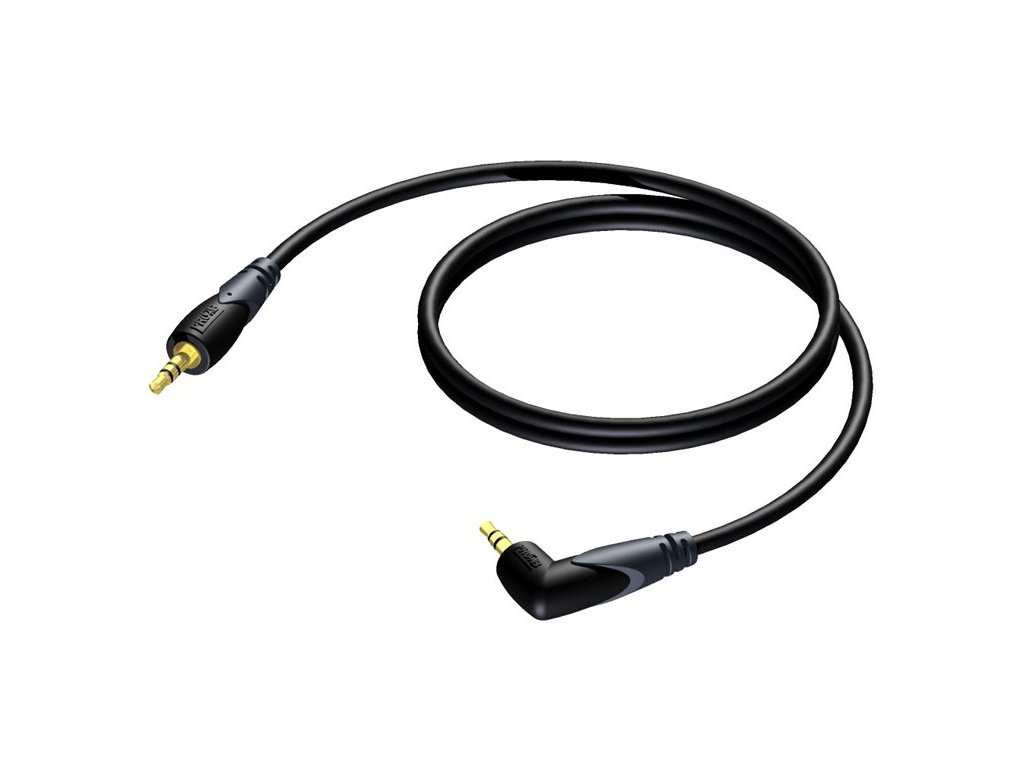 Gotowy kabel połączeniowy audio ze złączami ProCab Jack prosty 3,5 mm Stereo męski Jack 3,5 mm Stereo kątowy. Długość kabla 3m.