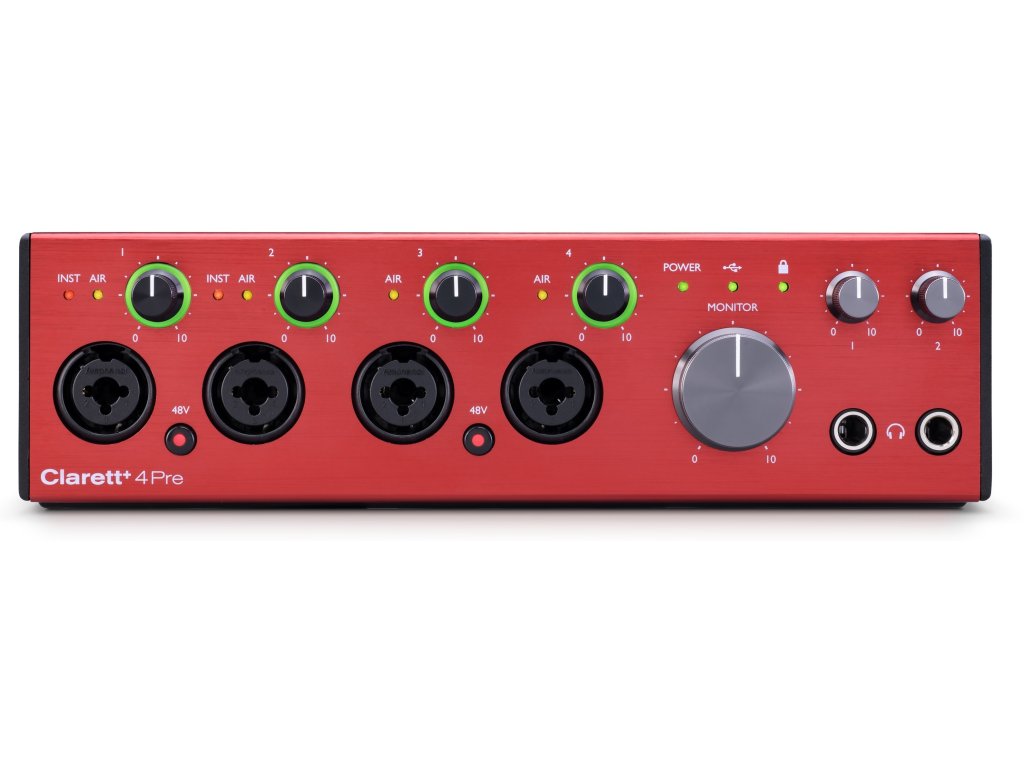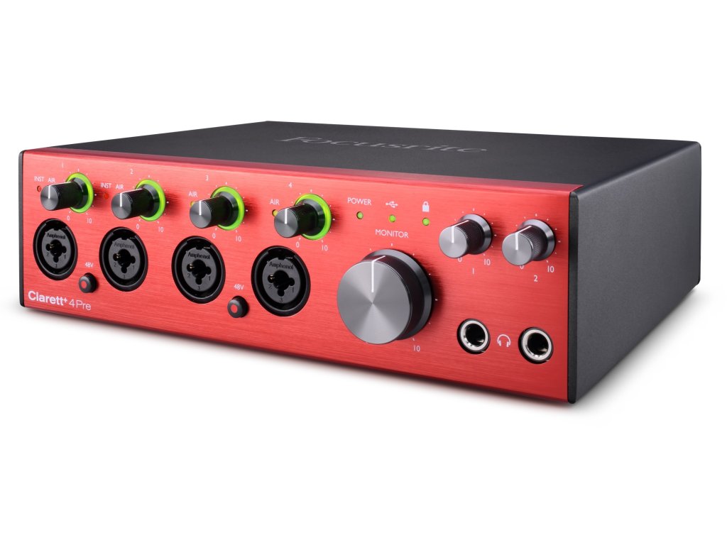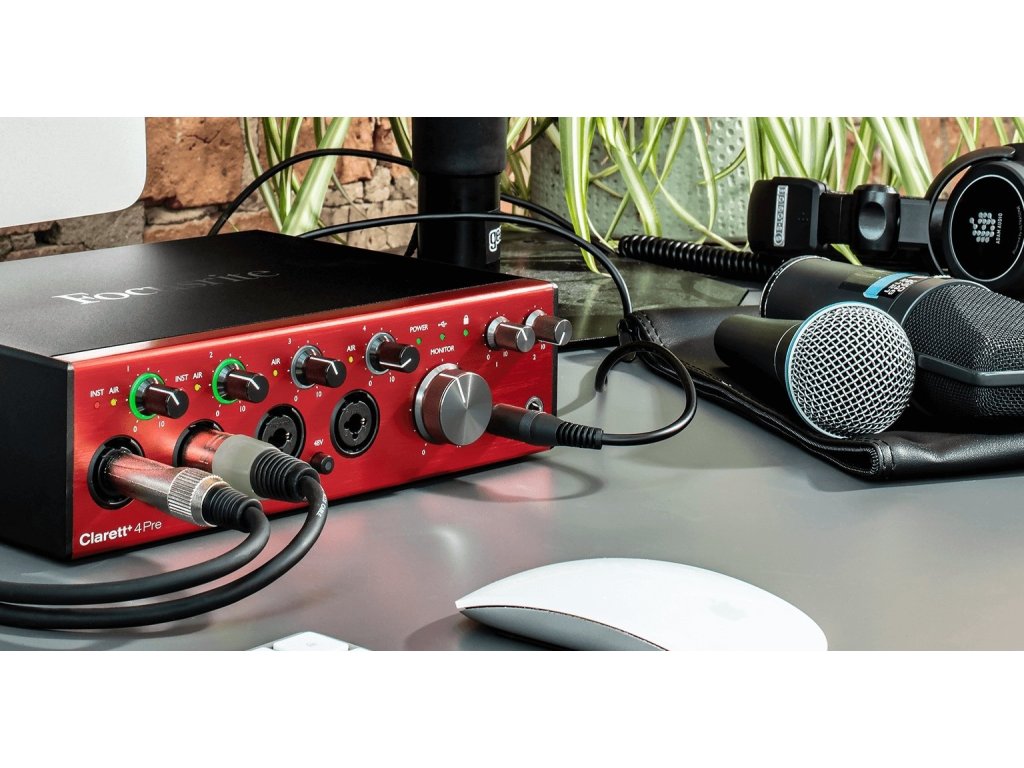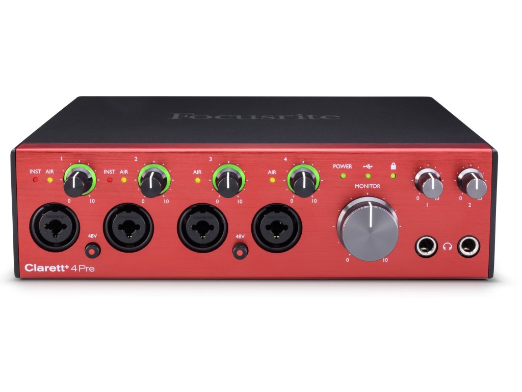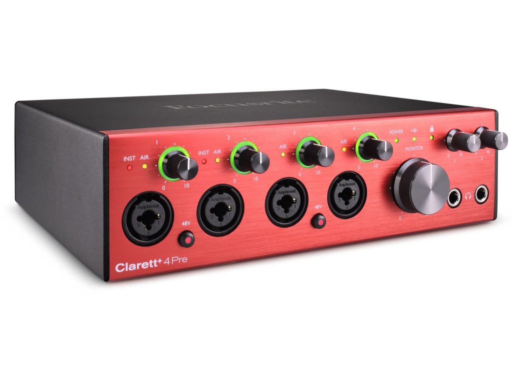 Nowy, ulepszony interfejs audio Clarett+ 4 Pre jest kontynuacją udanej serii produktów Clarett, odpowiedniej do domowych studiów nagraniowych, producentów muzycznych i muzyków. Dzięki kompaktowym rozmiarom i możliwości zasilania przez USB znajdzie zastosowanie również w podróży. Posiada przetworniki A/D i D/A o maksymalnej rozdzielczości do 24-bit/192kHz, a jego zakres dynamiczny sięga aż 118 dB. Obwód AIR emuluje impedancję i właściwości rezonansowe transformatorów wejściowych legendarnych przedwzmacniaczy studyjnych serii ISA110. Dzięki temu uzyskuje się przestrzenny i czysty dźwięk z ultra niskimi zniekształceniami i minimalnym szumem, który wynosi zaledwie -110 dB. Kolejną specjalnością są potencjometry Gain z doskonale liniowym przebiegiem wzmocnienia. Oczywiście, zasilanie phantom 48V jest standardem.