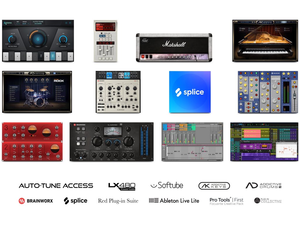 Pakiet oprogramowania został teraz rozszerzony o nowe wtyczki, które przeniosą Twoje brzmienie na profesjonalny poziom i znacznie uproszczą cały proces nagrywania i postprodukcji. Hitmaker Expansion zawiera Auto-tune Access dla wokali, unikalny studyjny reverb Relab LX480 Essentials, wirtualny lampowy wzmacniacz Softube Marshall Silver Jubilee 2555, XLN Addictive Drums i Keys, 2 wtyczki i Polysynth marki Brainworx, Focusrite Red 2 & 3 (EQ i kompresor), lub trzymiesięczną licencję Splice Sounds i Pro Tools.