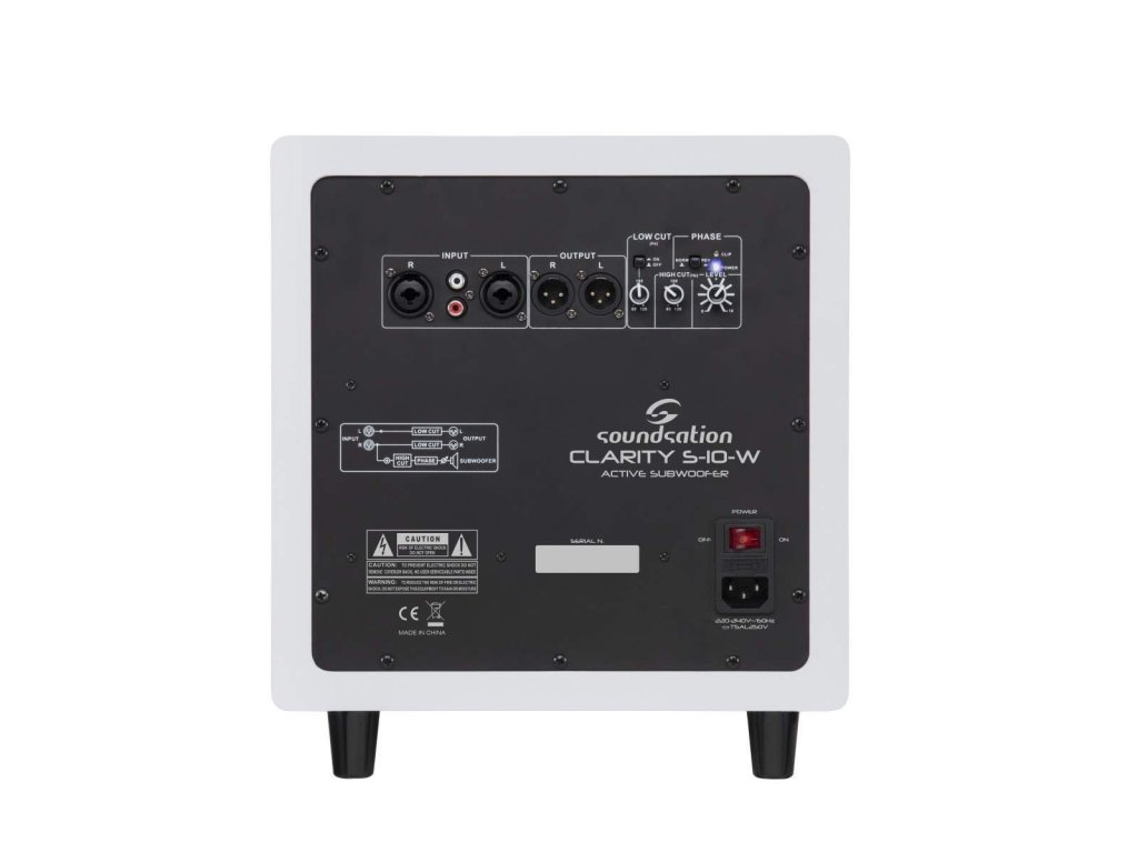 W wytrzymałej konstrukcji z materiału MDF znajduje się 10-calowy głośnik basowy, który wraz ze wzmacniaczem AB zapewni maksymalną moc aż 350 W. Tylny panel oferuje elastyczną łączność w postaci stereo Kombi XLR/TS i wejść RCA, wyjść XLR. Ponadto znajduje się tutaj regulator Volume i przełączniki do tłumienia/wzmacniania niskich i wysokich częstotliwości w zakresie od 80 do 120 Hz. Subwoofer jest dostępny w kolorze białym i czarnym.