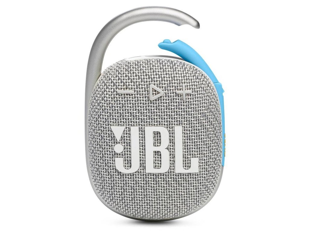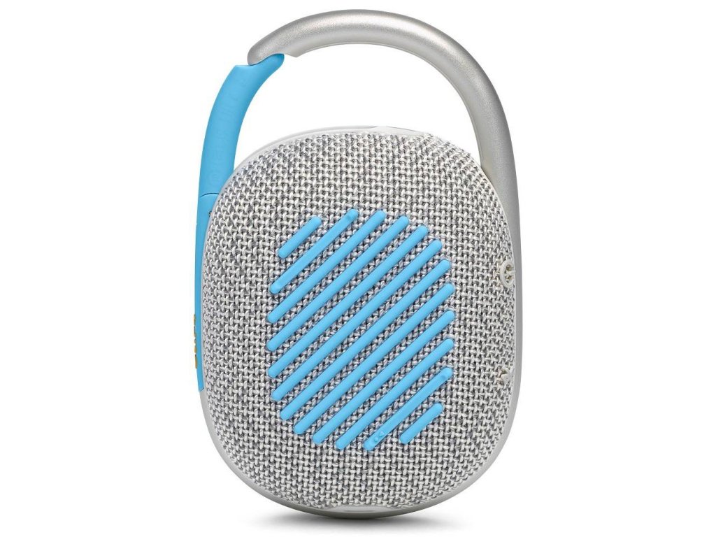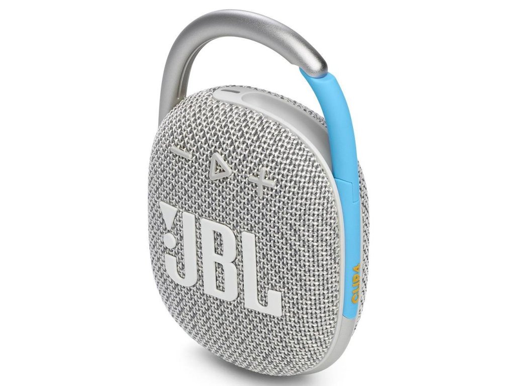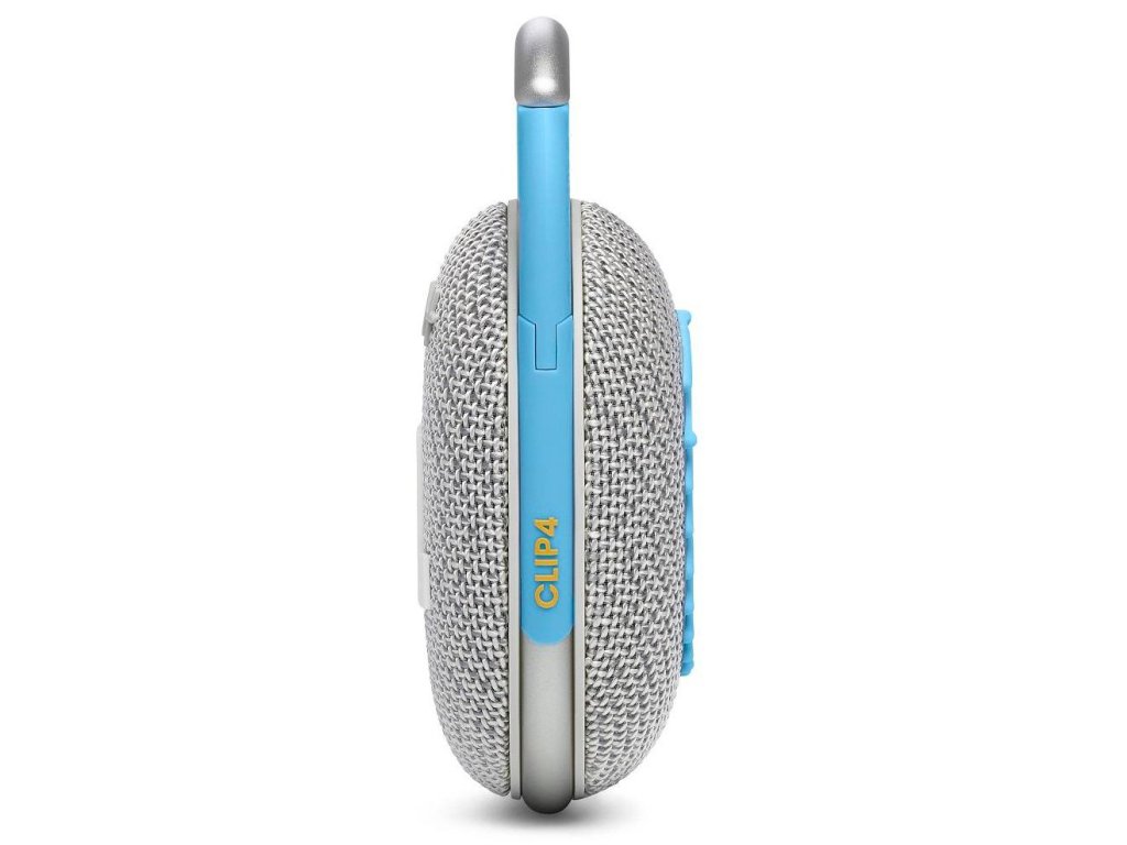 Ultraprzenośna konstrukcja JBL Clip 4 Eco doskonale pasuje do aktualnych trendów, a w kolorowej wersji z wyraźnymi detalami wygląda równie świetnie, jak brzmi.