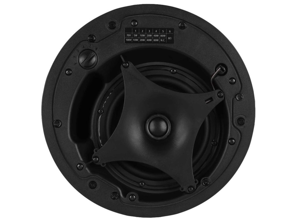 CMR 60T to uniwersalny, dwudrożny głośnik sufitowy odpowiedni do szerokiego zakresu zastosowań. Dzięki eleganckiemu i dyskretnemu wyglądowi oraz precyzyjnym detalom, CMR 60T pasuje do estetycznego wyglądu każdego budynku. Wysokiej jakości przetworniki, ułożone w układzie współosiowym, gwarantują dokładną reprodukcję muzyki w całym paśmie częstotliwości i zapewniają imponujący poziom ciśnienia akustycznego jak na tak kompaktowy rozmiar. Instalacja jest łatwa dzięki trzem zaciskom o długim skoku. Magnetyczna maskownica umożliwia natychmiastowy dostęp do przełącznika mocy z przodu: transformator liniowy zapewnia pełną moc 80 W na liniach 70 V i 100 V o stałym napięciu oraz pięć różnych poziomów mocy.