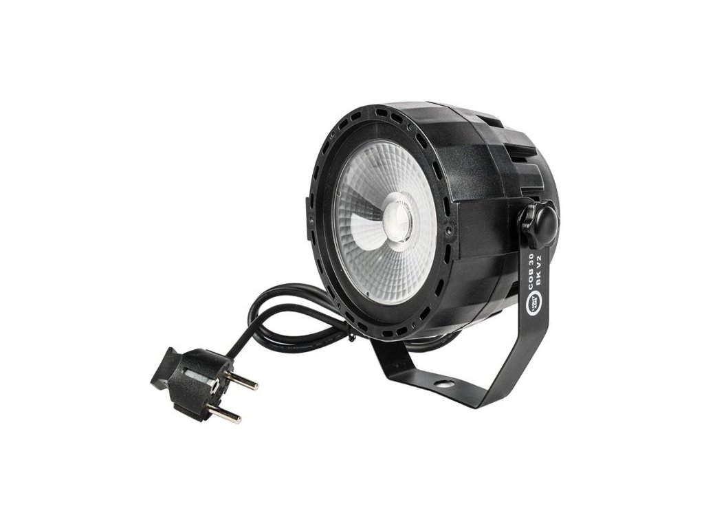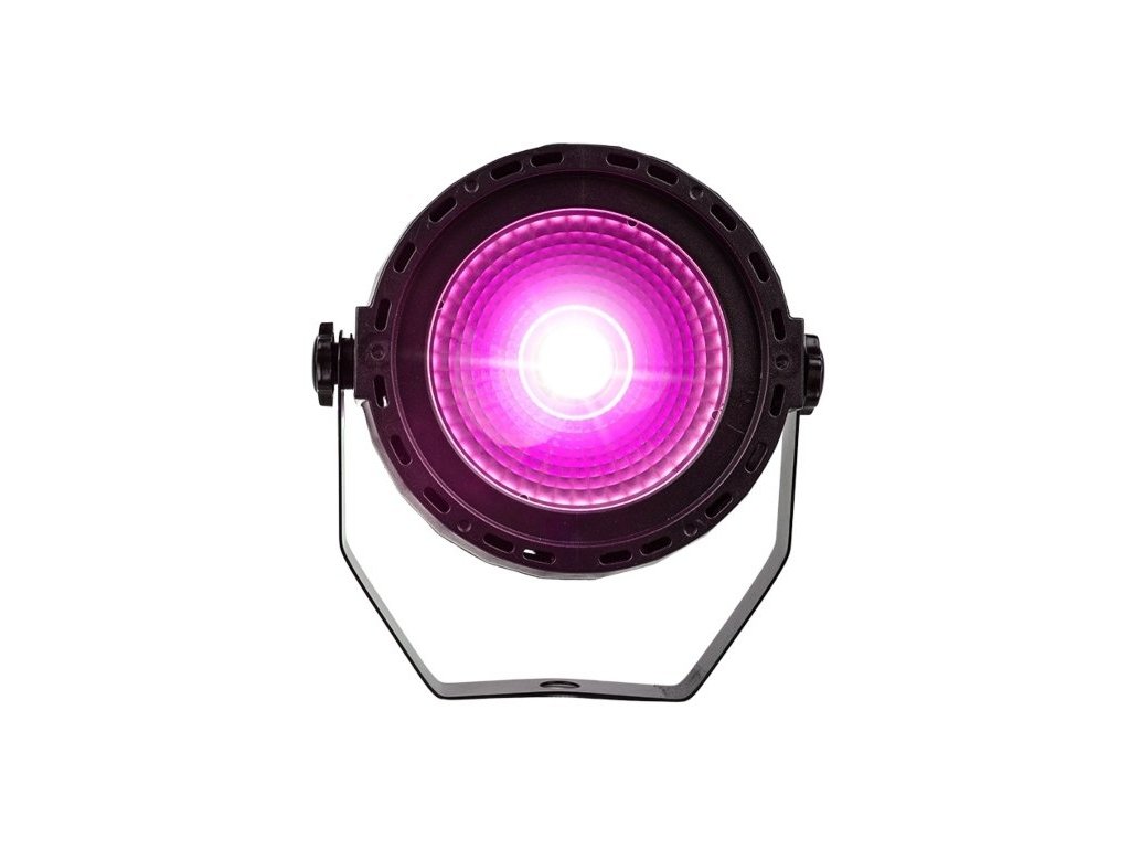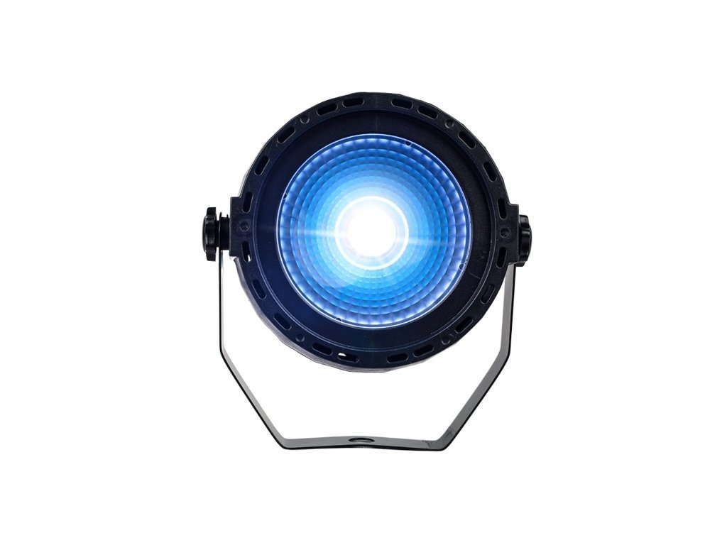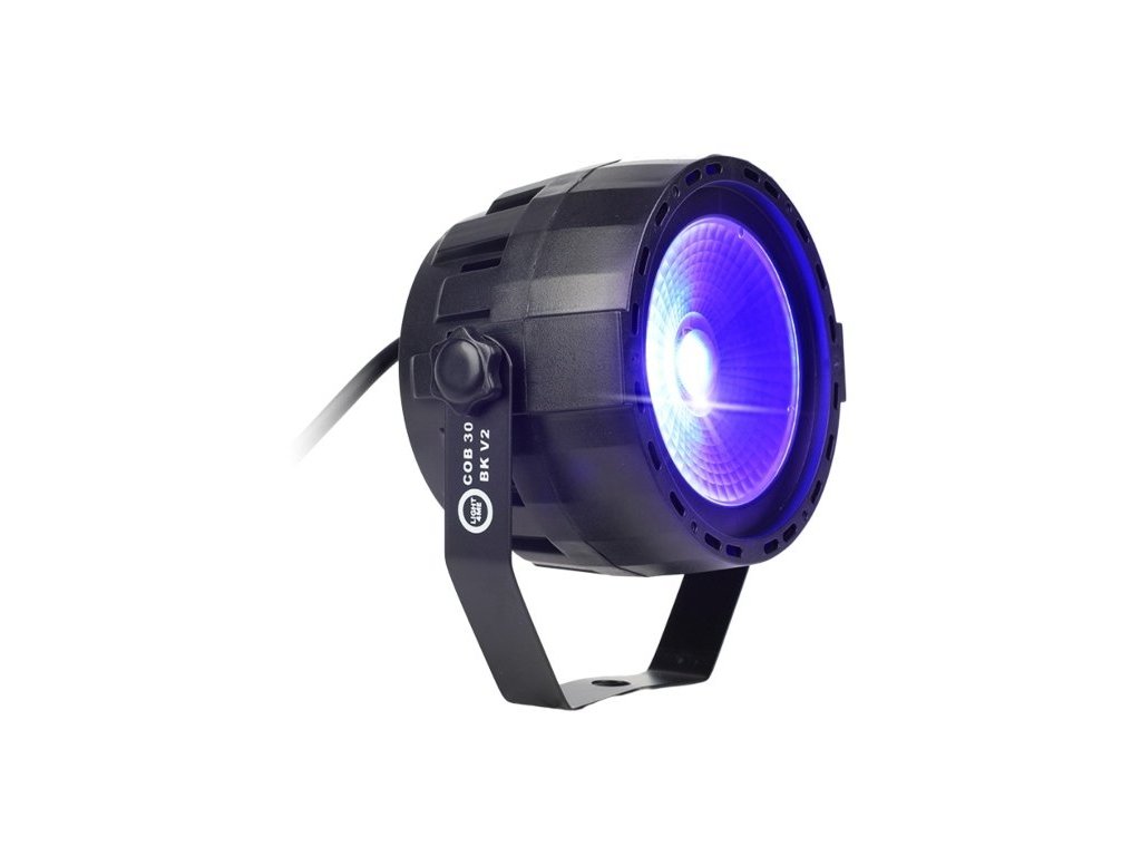 LIGHT4ME COB 30 BK V2 to reflektor par przeznaczony do profesjonalnego oświetlenia scenicznego, który wykorzystuje diodę COB RGB LED o mocy 30 W. Źródło światła składa się z trzech kanałów (czerwony, zielony i niebieski), co umożliwia szeroką gamę kombinacji kolorów i efektów. Kąt świecenia 35° zapewnia równomierne rozłożenie światła w przestrzeni, co czyni go odpowiednim do zastosowania w różnych środowiskach, w tym na małych i średnich scenach, w klubach i salach weselnych.