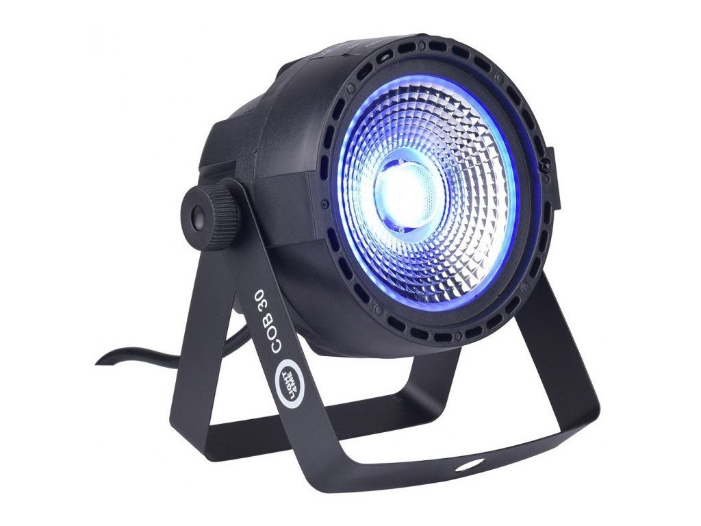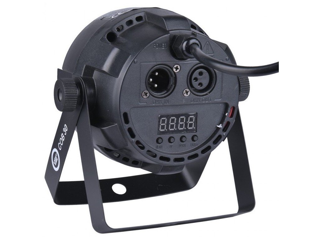 Mały i bardzo wydajny reflektor PAR o mocy 30 W, pracujący w palecie kolorów RGB. Urządzenie może być sterowane za pomocą protokołu DMX512, który między innymi oferuje możliwość płynnego mieszania kolorów. Aluminiowa konstrukcja.